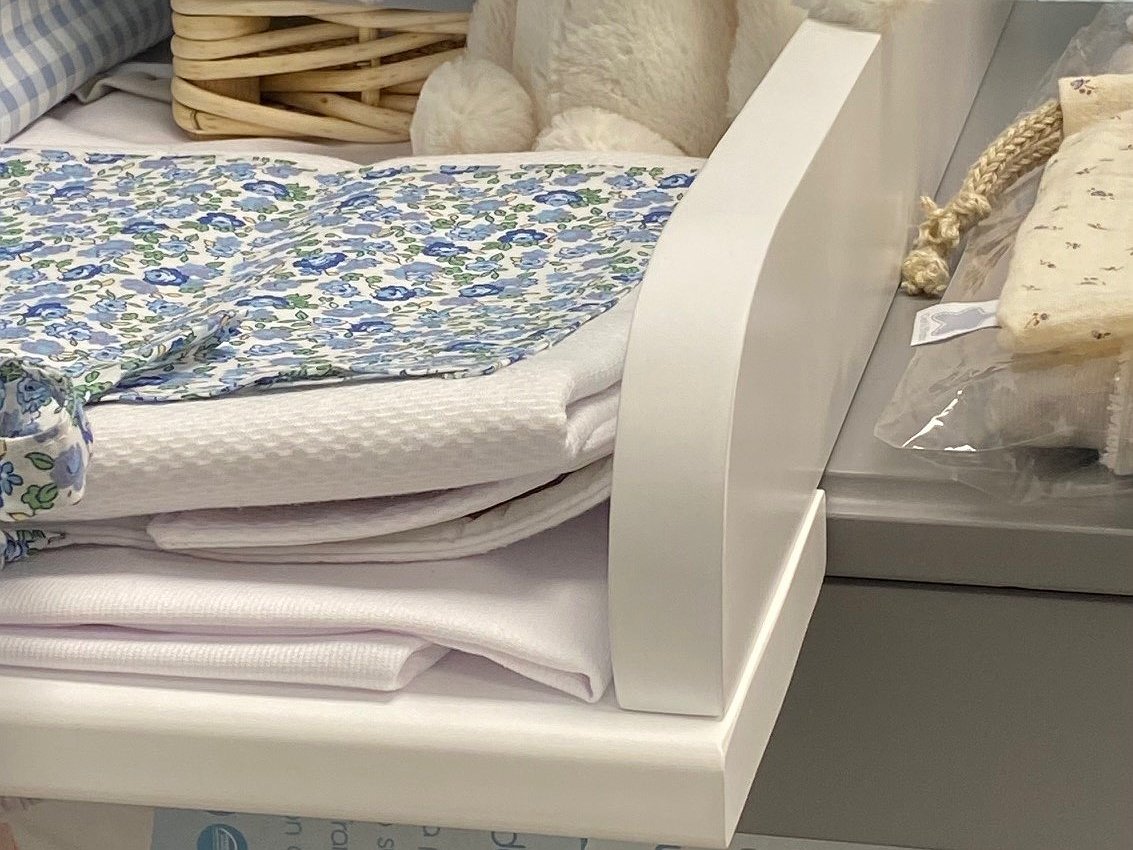 Es de fácil montaje y puedes colocar en el lateral la Cesta mimbre bebé con cenefa o la que más te guste, teniendo a mano todo lo necesario para cambiar a tu bebé y así no dejarlo solo .