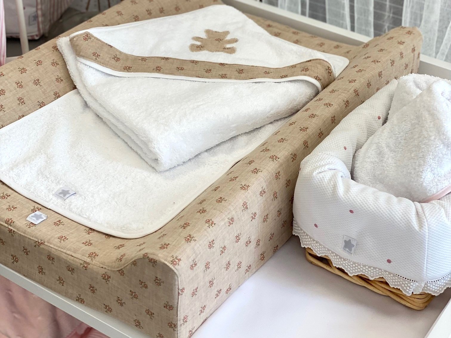 Adaptador para cambiador de cómoda ajustable, en madera maciza de diseño elegante lacada en blanco o natural. ( No es de melamina)