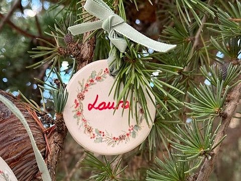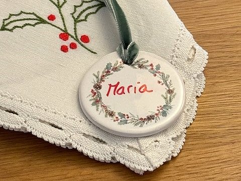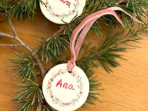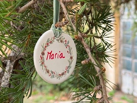 Adorno de Navidad con nombre en cerámica que hará de cada detalle algo especial.