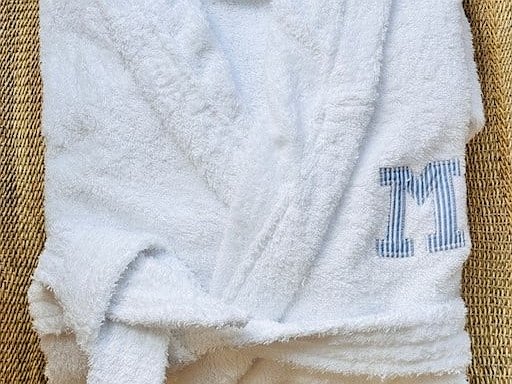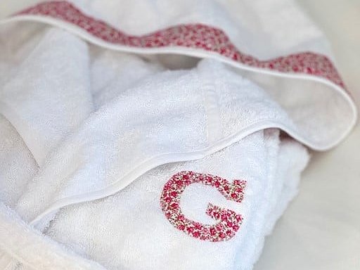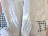 Siempre el detalle lo solemos poner delante en la izquierda del albornoz.