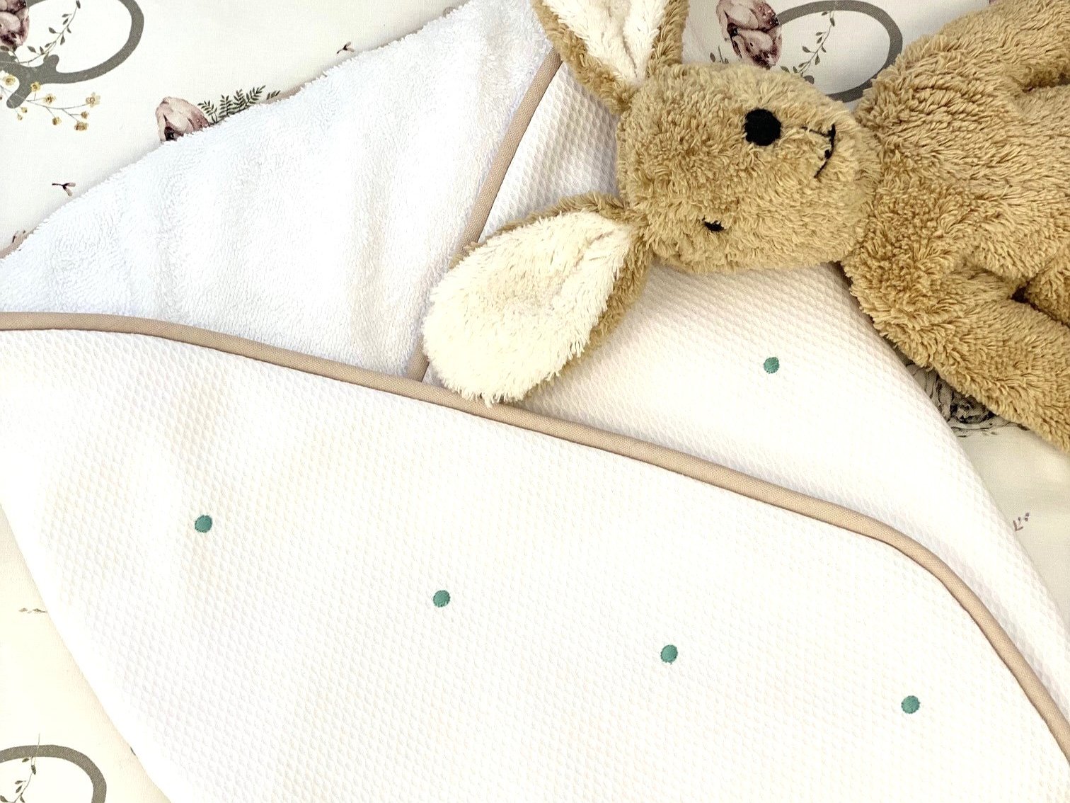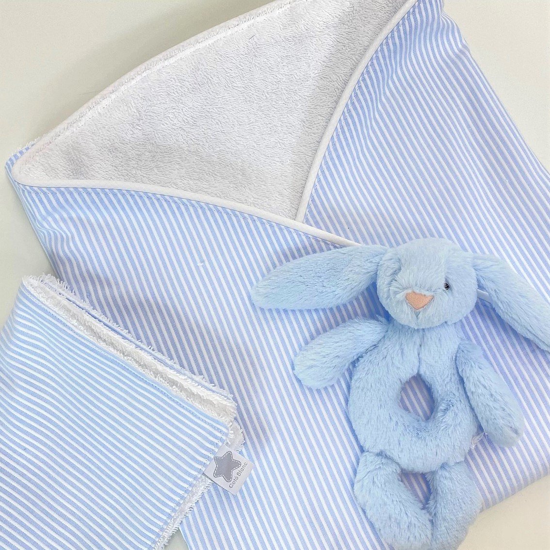 Arrullo bebé con cordoncillo ideal para la clínica y para usarlo posteriormente para tapar al bebé y mantener así su calor corporal.