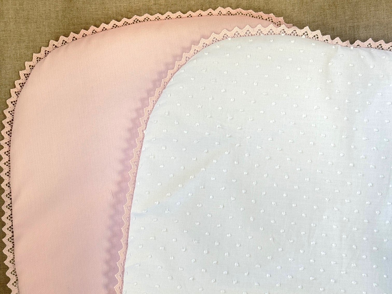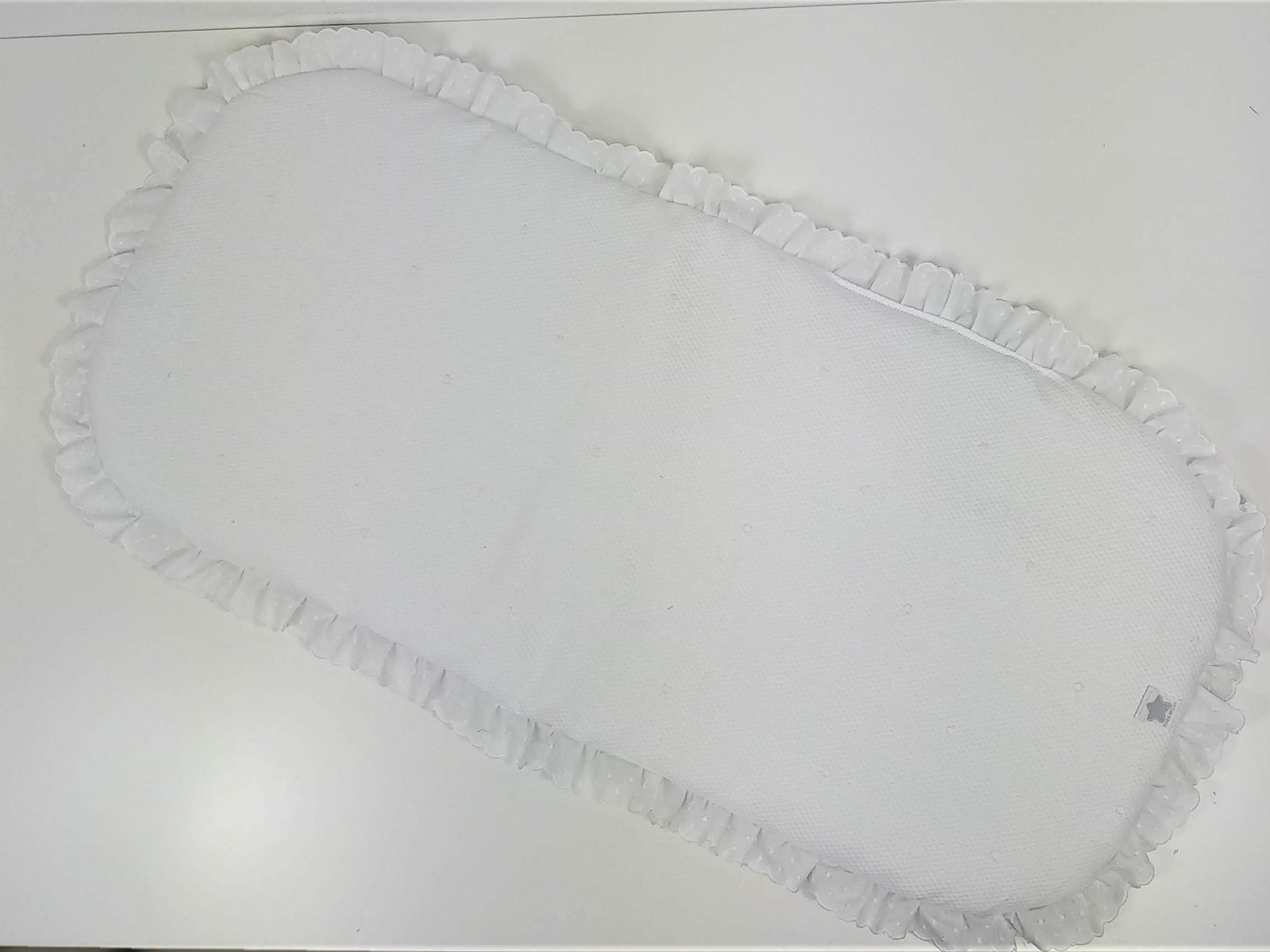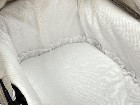 Bajera acolchada con puntilla para capazo del cochecito. Perfecta para colocarla encima del colchón del cuco en verano.