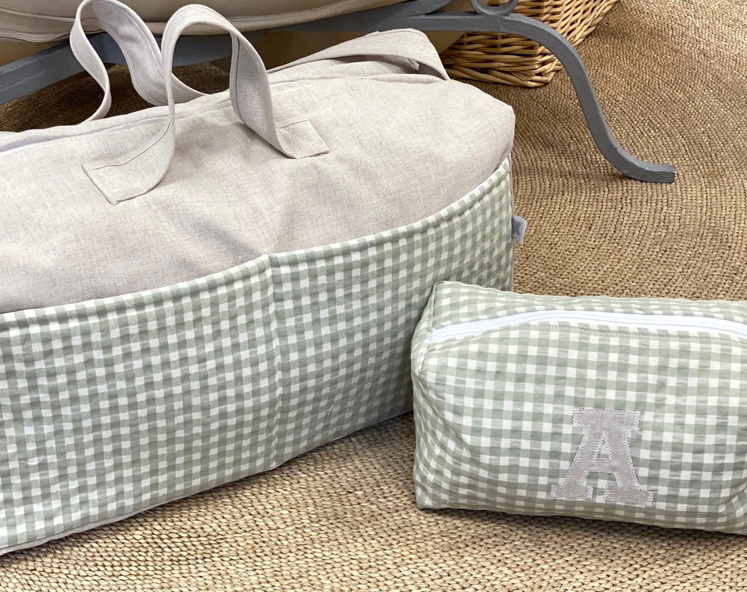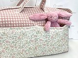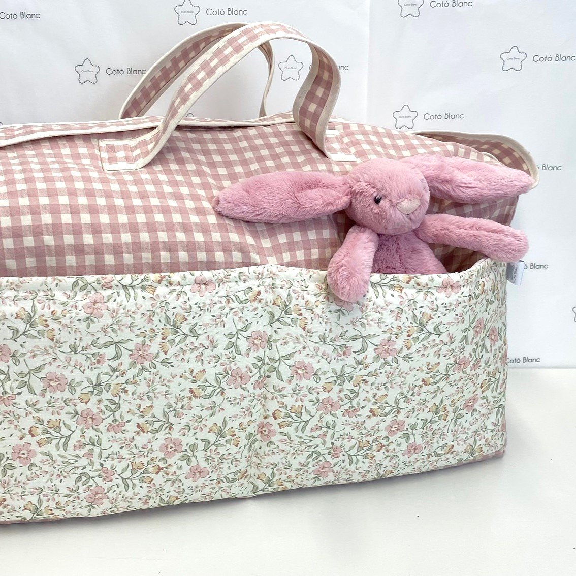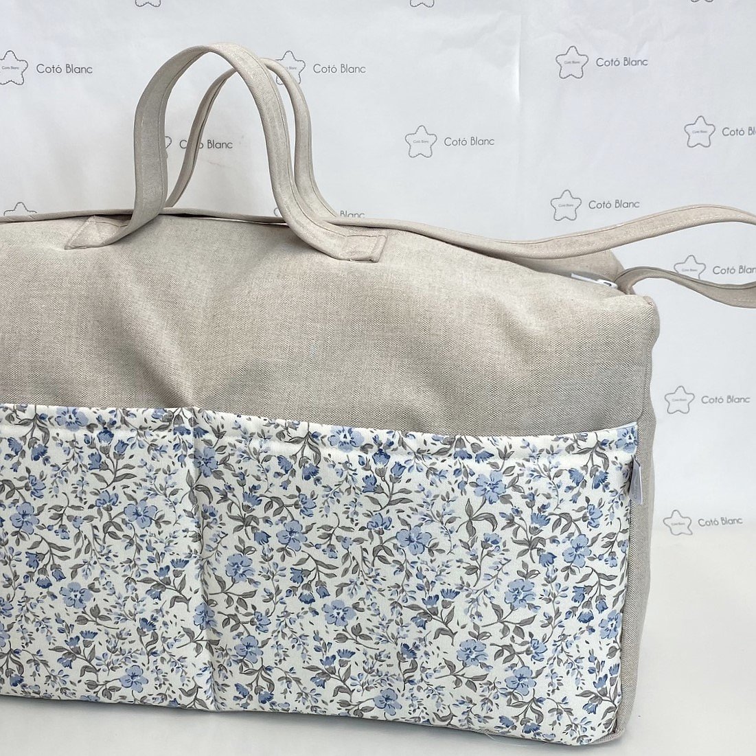 La bolsa es blandita y está acolchada y puedes personalizarla eligiendo la tela de la bolsa, del bolsillo y de las asas.
