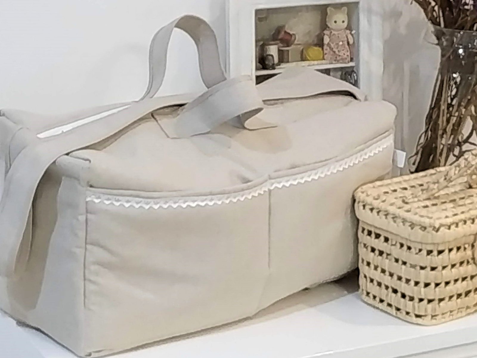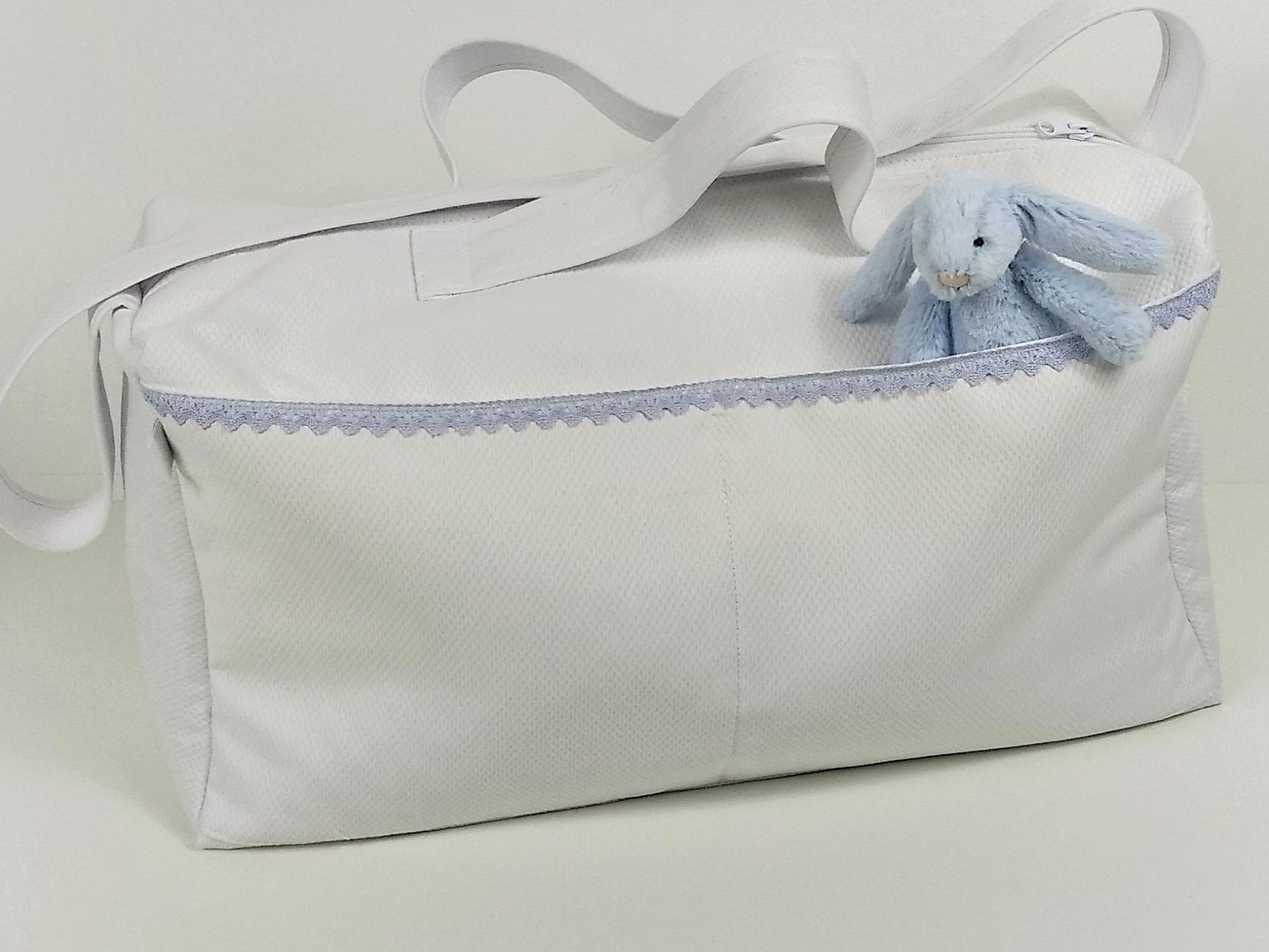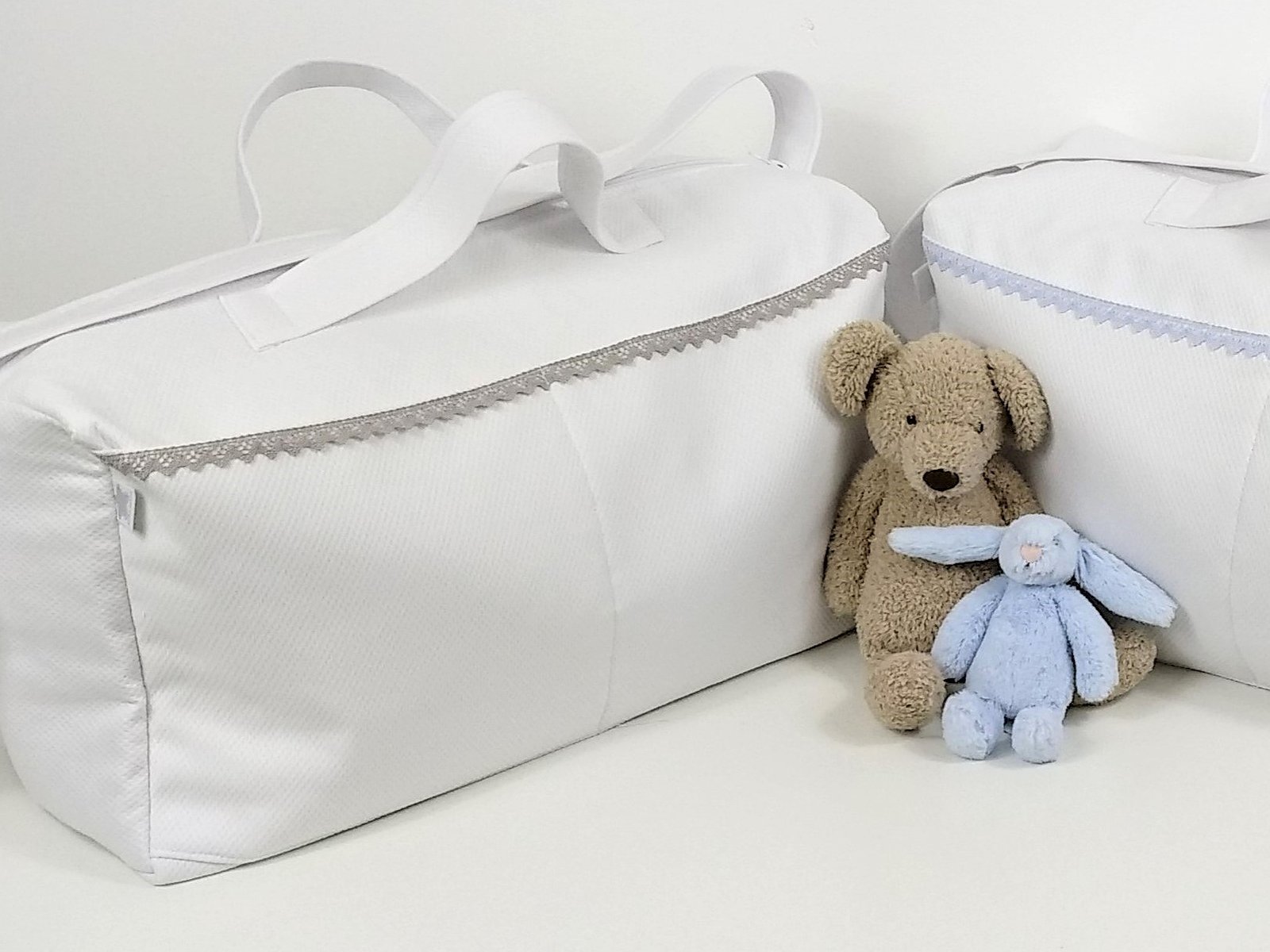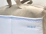 Bolsa clínica de tela con puntilla bolillo es ideal para llevar todo lo necesario para el bebé. La hacemos en la tela que tu escojas con bolsillo de lado a lado.