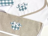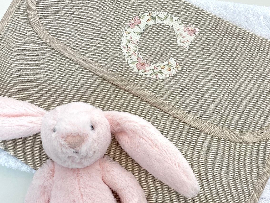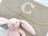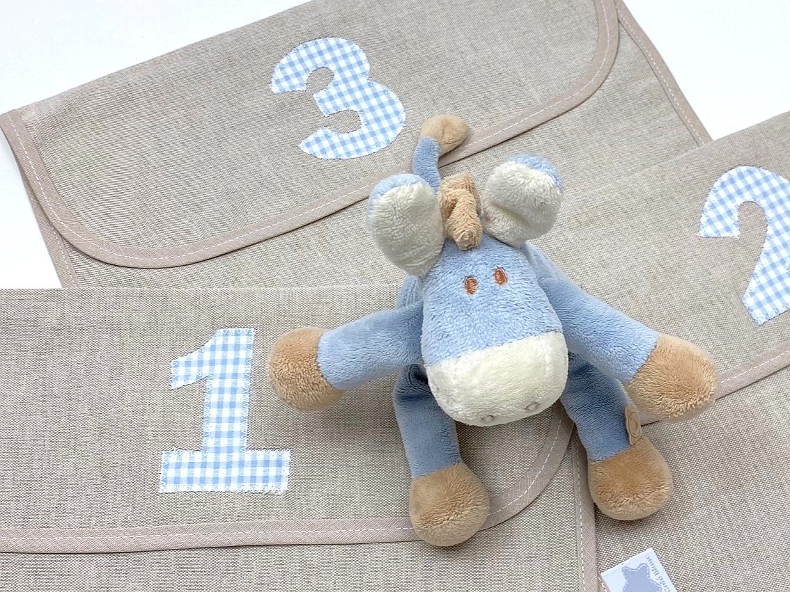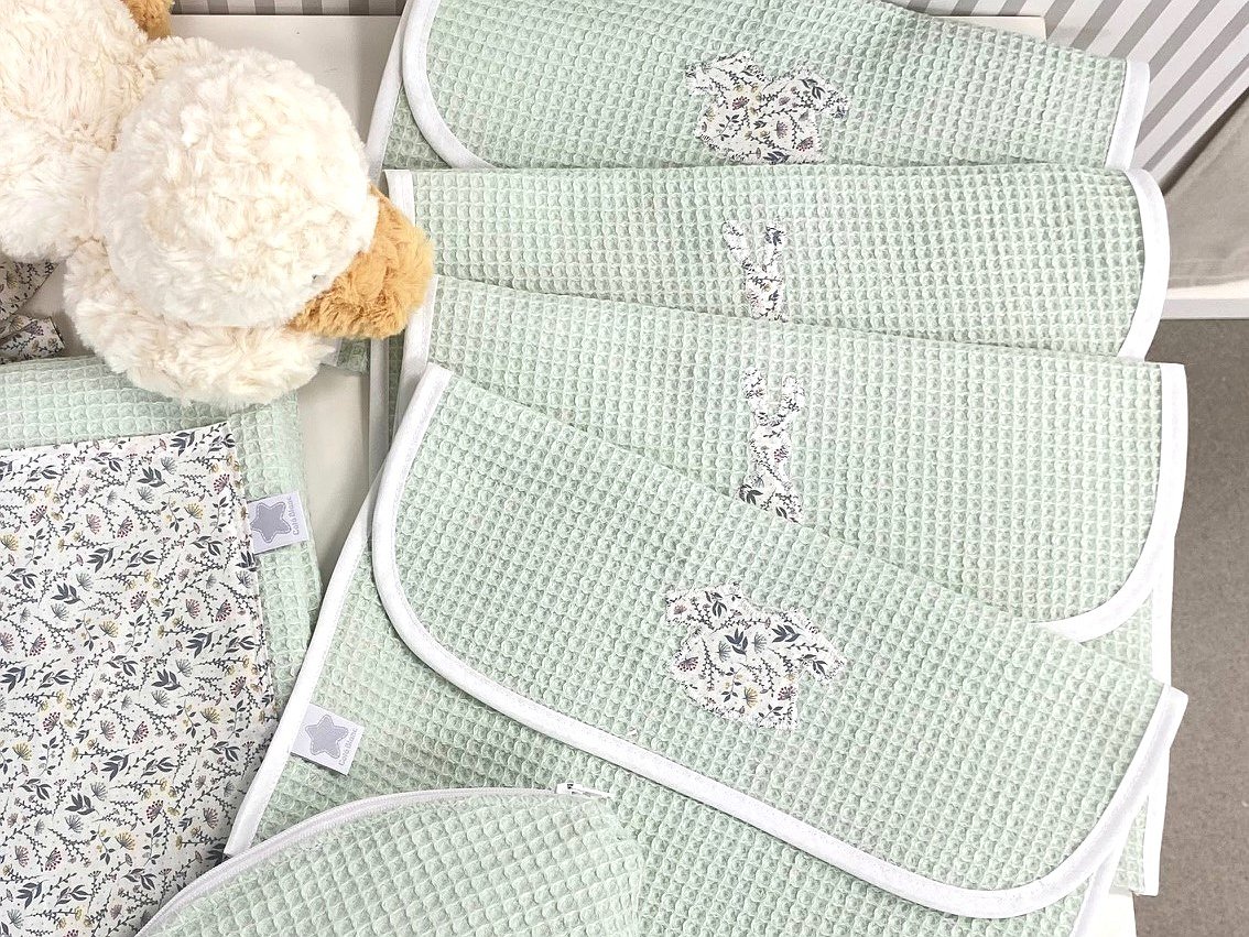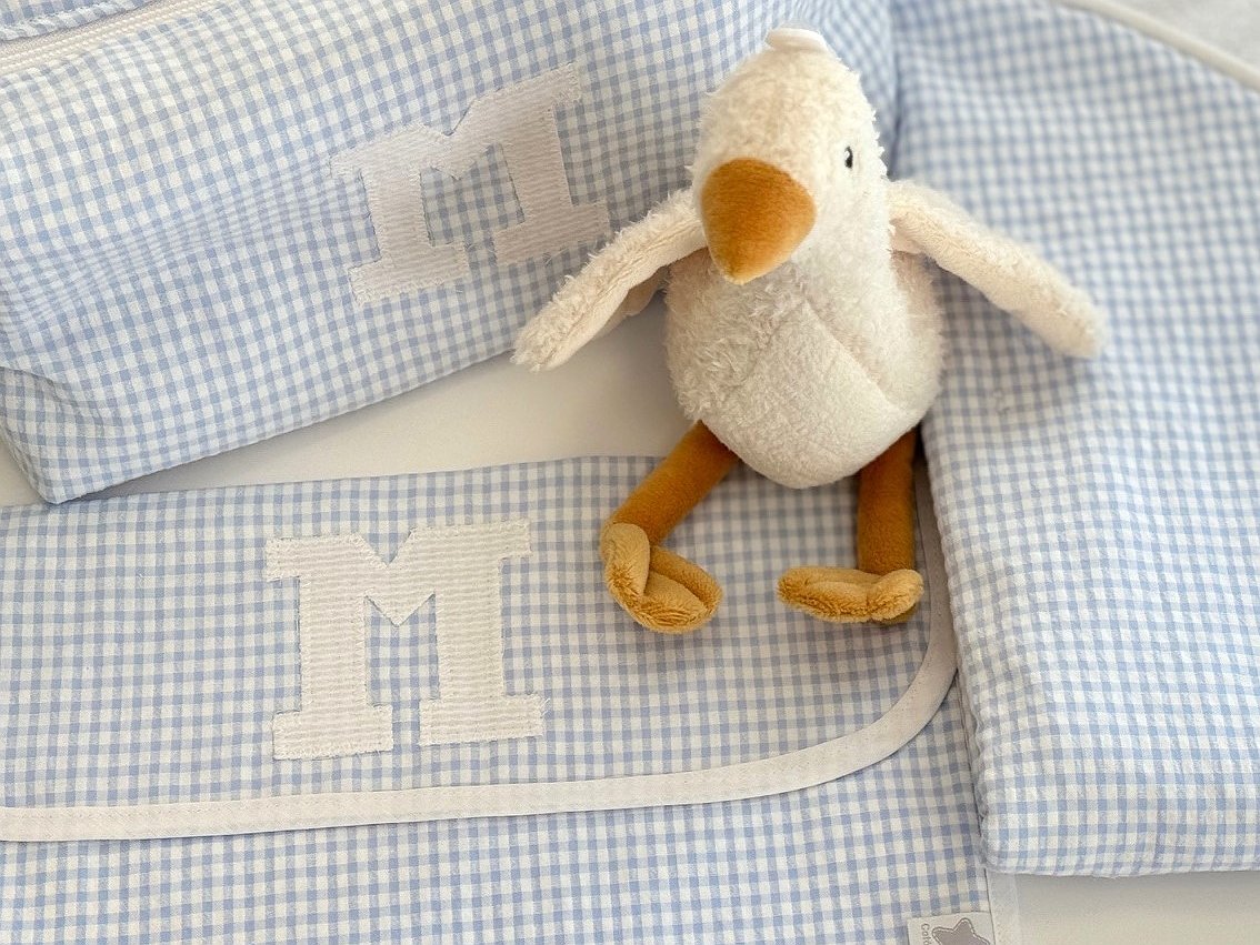 Puedes personalizarla con la tela que más te guste. Además, puedes elegir el detalle o la inicial del bebé como detalle decorativo (solo una opción, detalle o inicial).