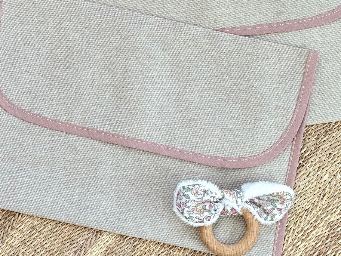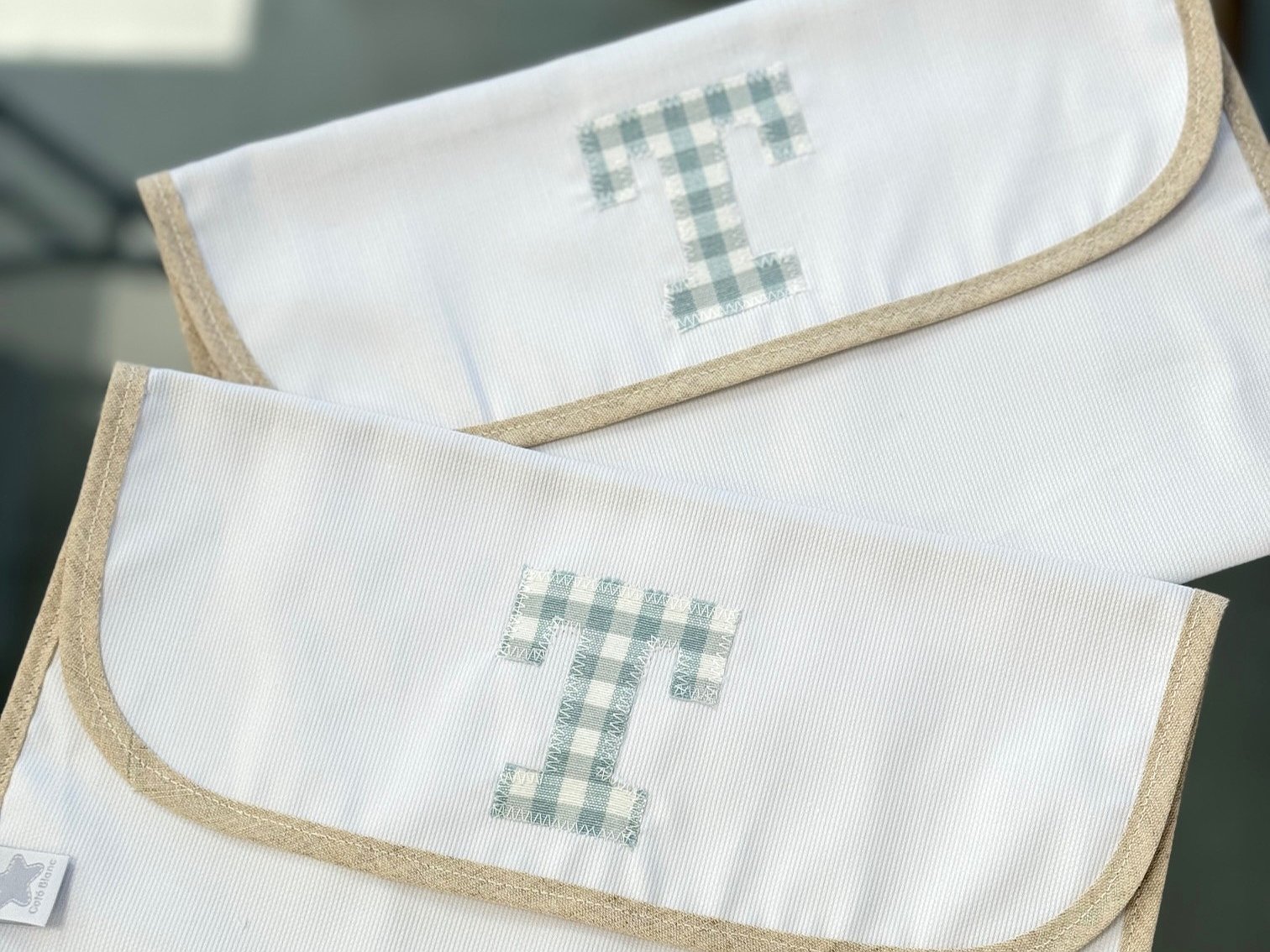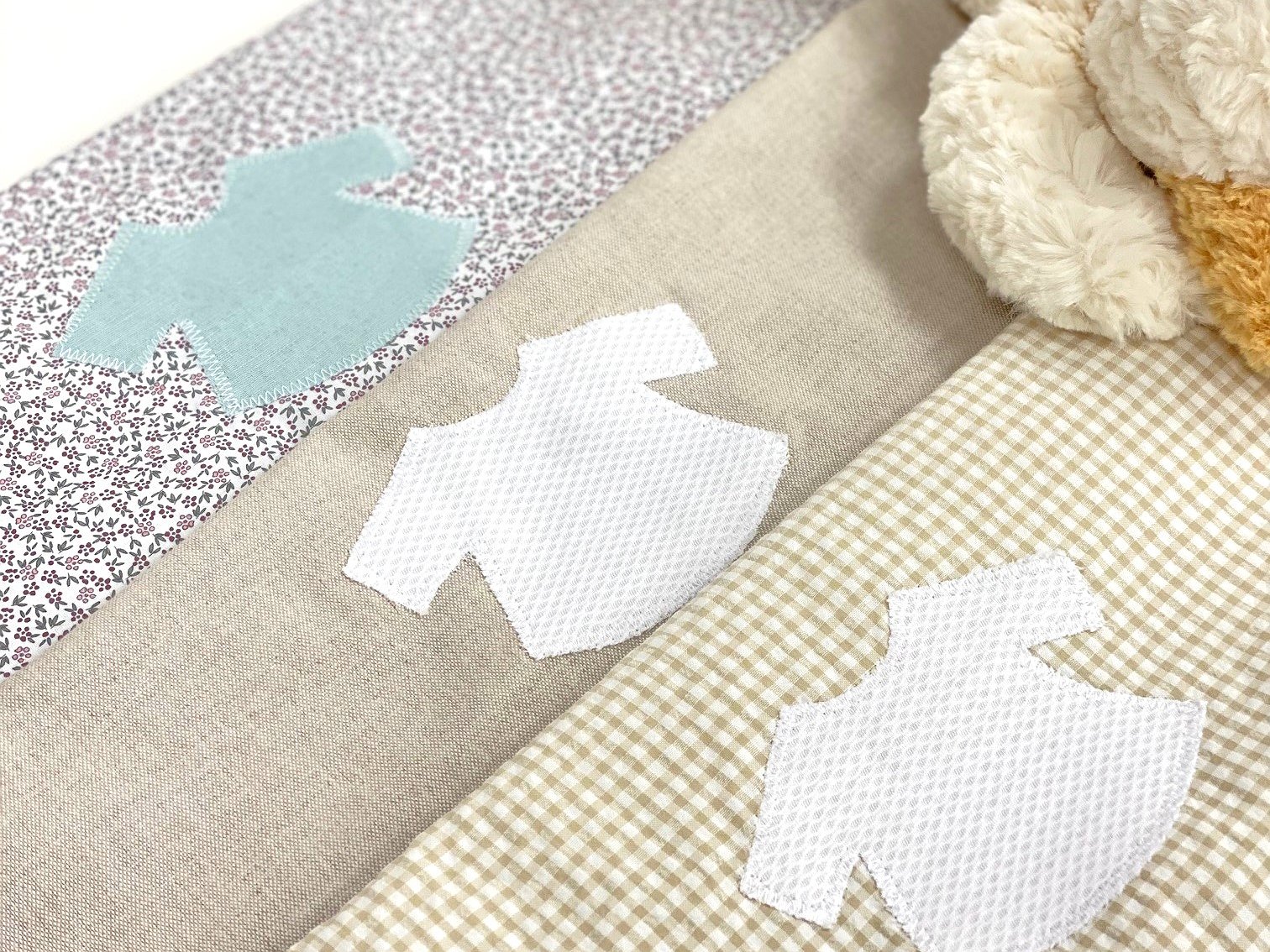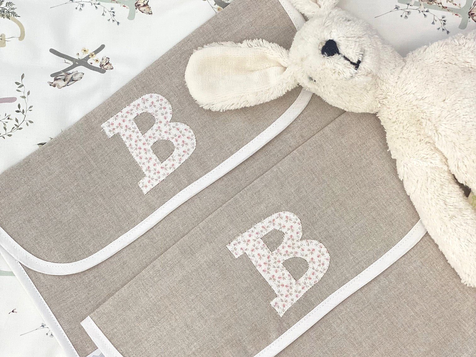 Puedes personalizarla con la tela que más te guste. Además, puedes elegir el detalle o la inicial del bebé como detalle decorativo (solo una opción, detalle o inicial).