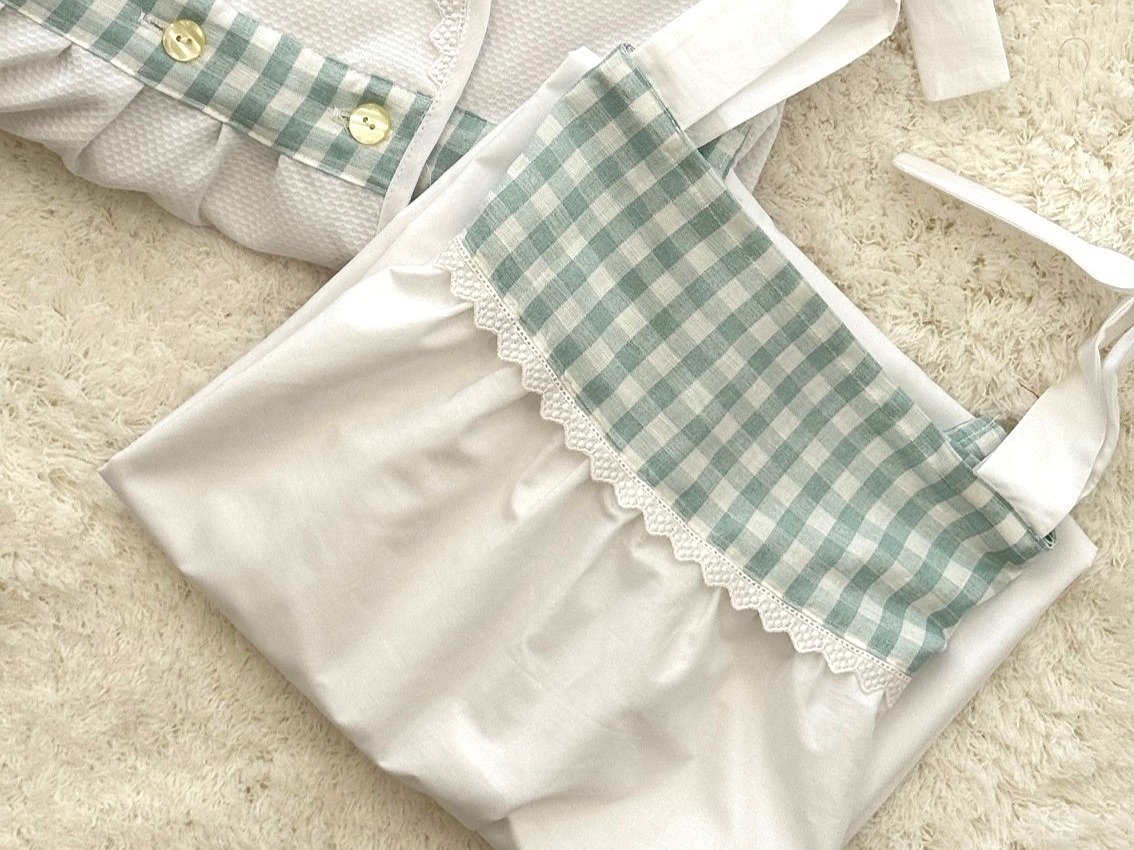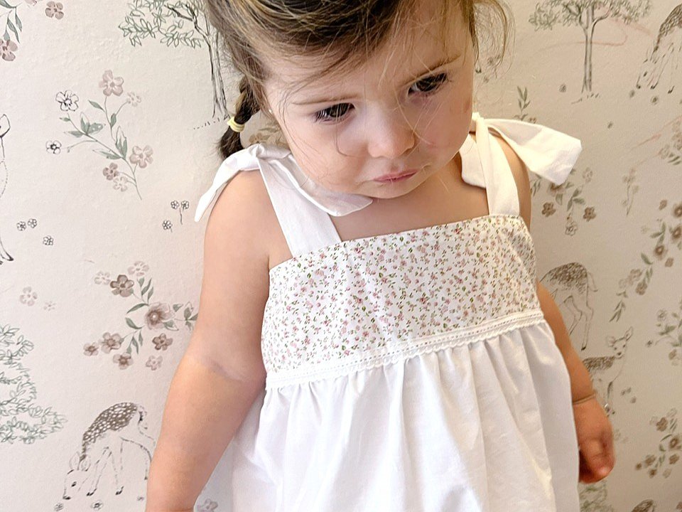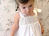 Camisón de niña básico personalizado. Se trata de un diseño de tirantes, pechera de tela y falda blanca confeccionada en algodón egipcio 100%.