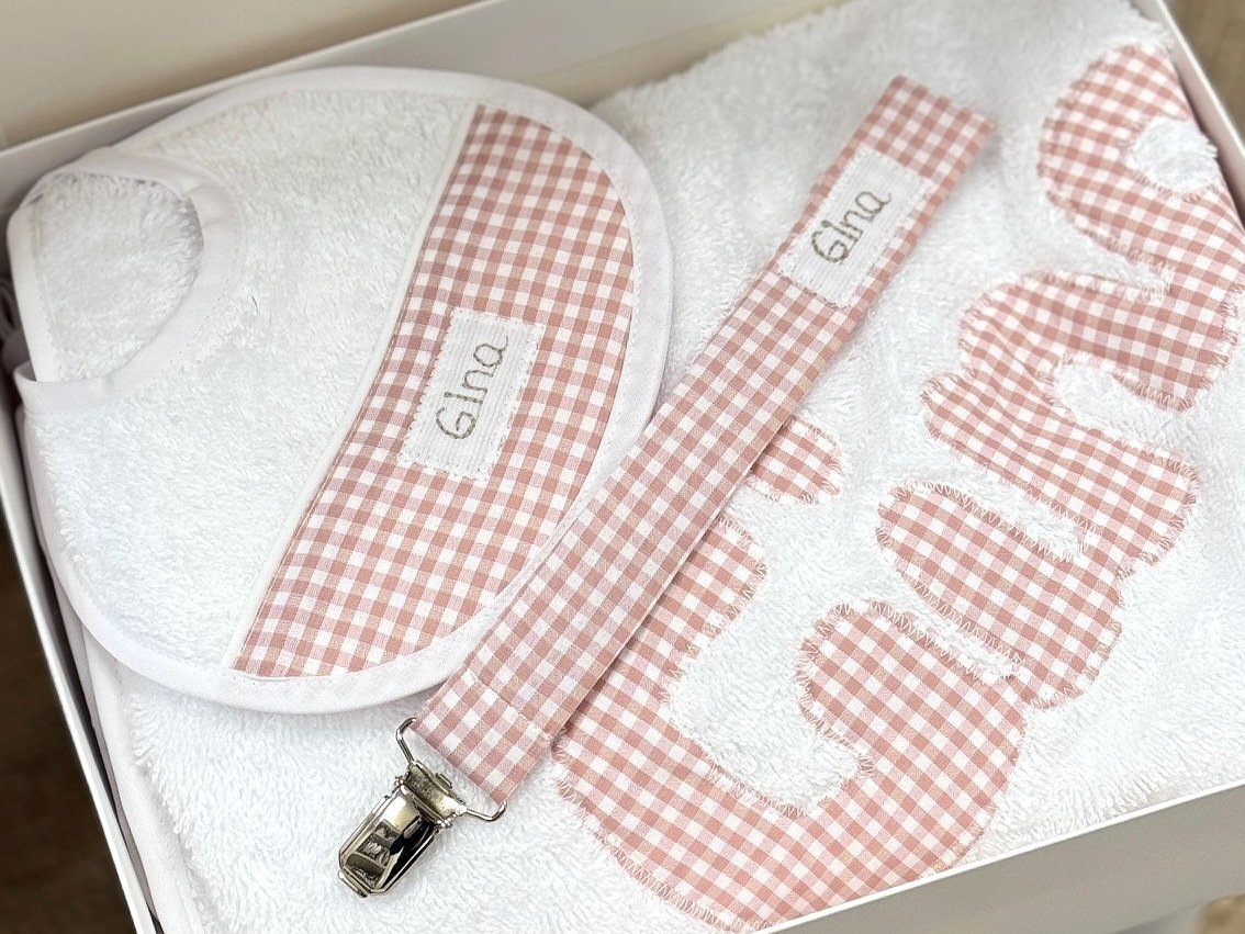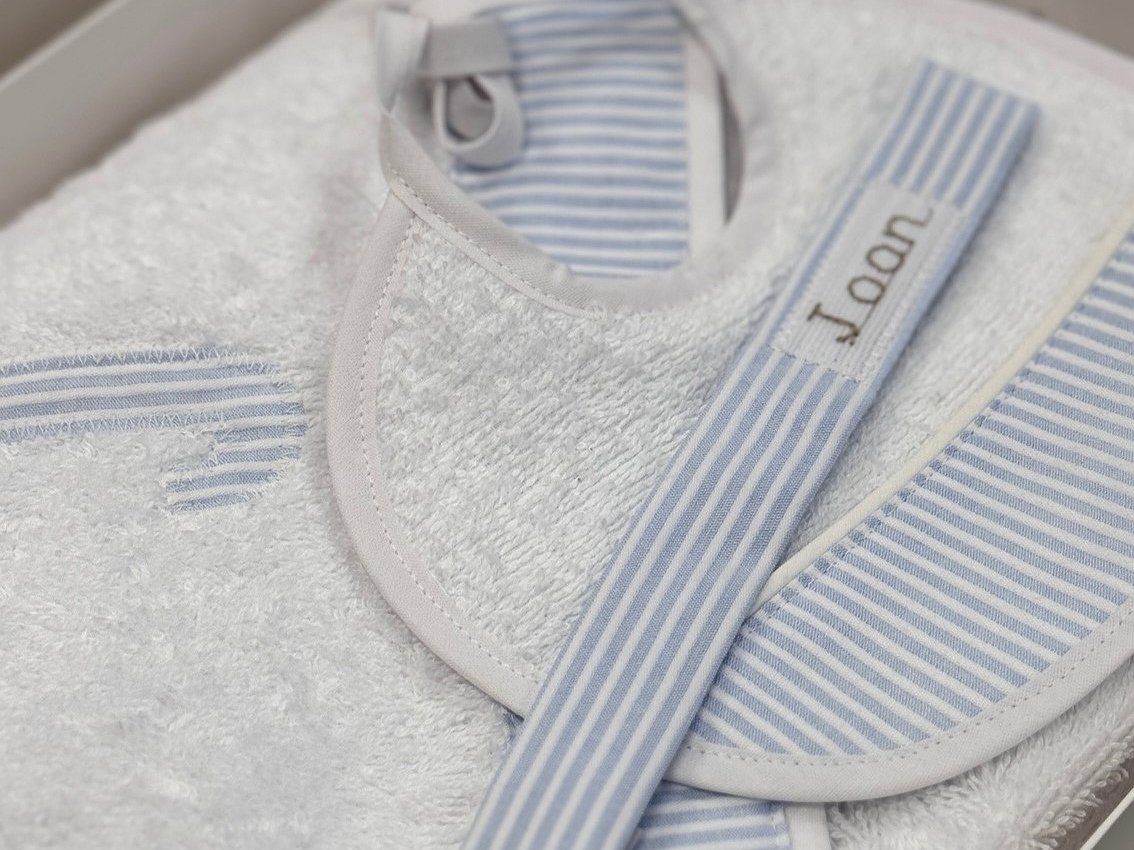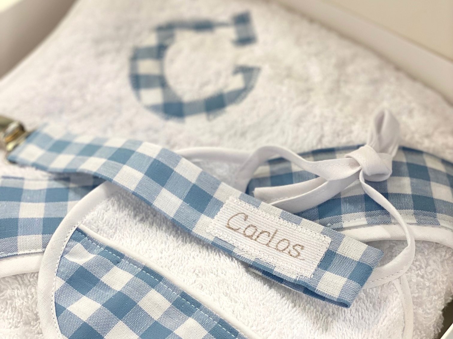 Puedes personalizar los productos con la tela que más te guste (todos irán a conjunto). Además, puedes poner el nombre del bebé.