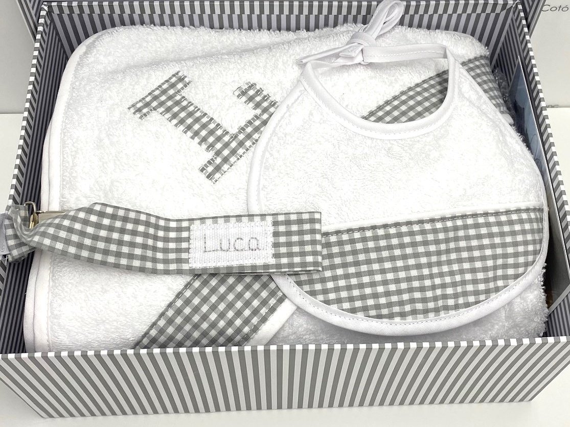 Elige la tela con la que prefieres que te lo preparemos de entre todas las que te proponemos y si la quieres personalizado con el nombre , indícanoslo.