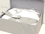 Todos los productos están colocados en una caja del color que quede más bonito en función de la tela que hayas seleccionado según stock. Las medidas de la caja son de: 32x25x15 cm aproximadamente.