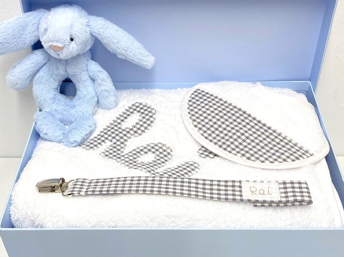 Canastilla regalo bebé pack 1 compuesta por 3 productos para el recién nacido.