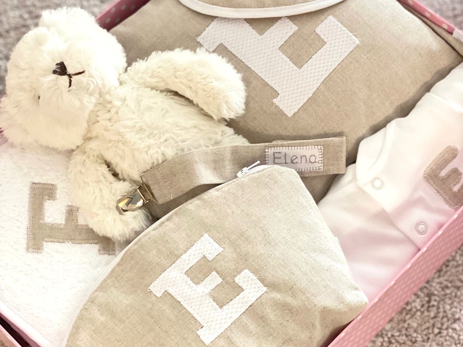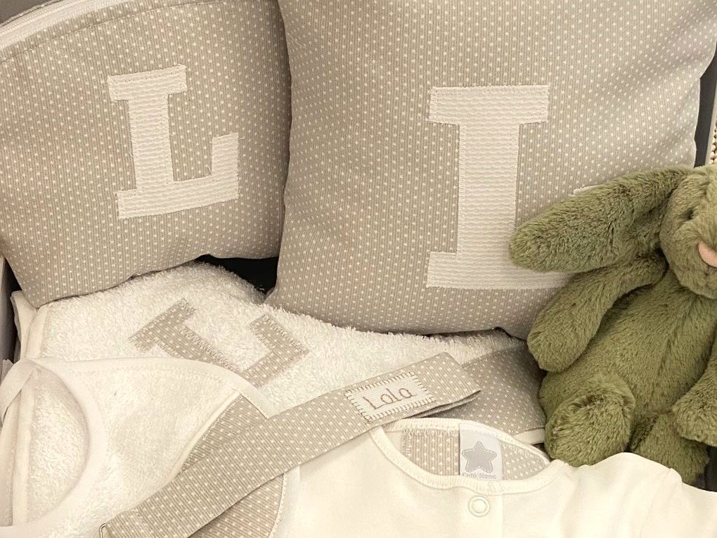 Puedes personalizar los productos con la tela que más te guste (todos irán a conjunto). Además, puedes poner el nombre del bebé.
