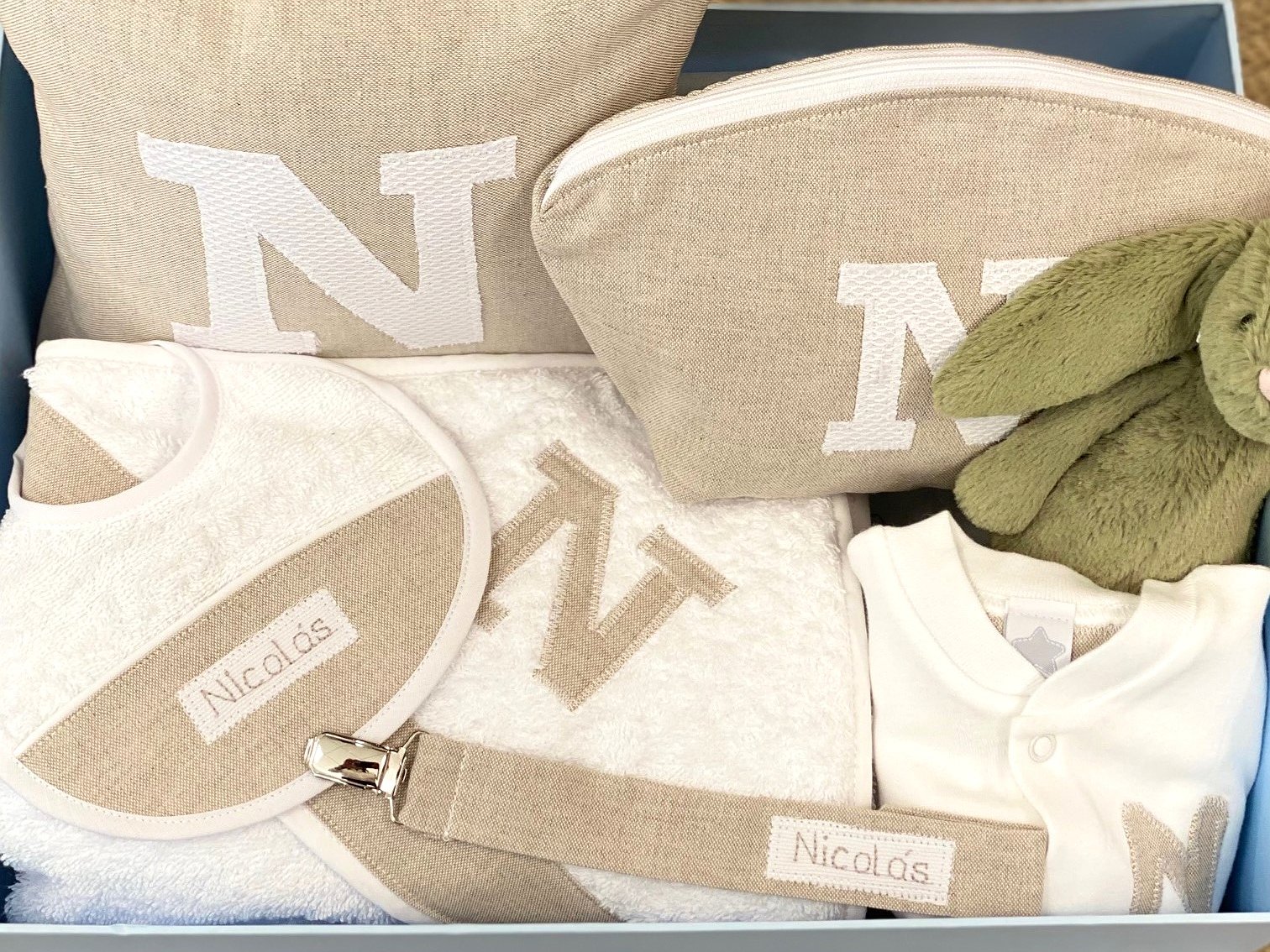– Un cojín con inicial