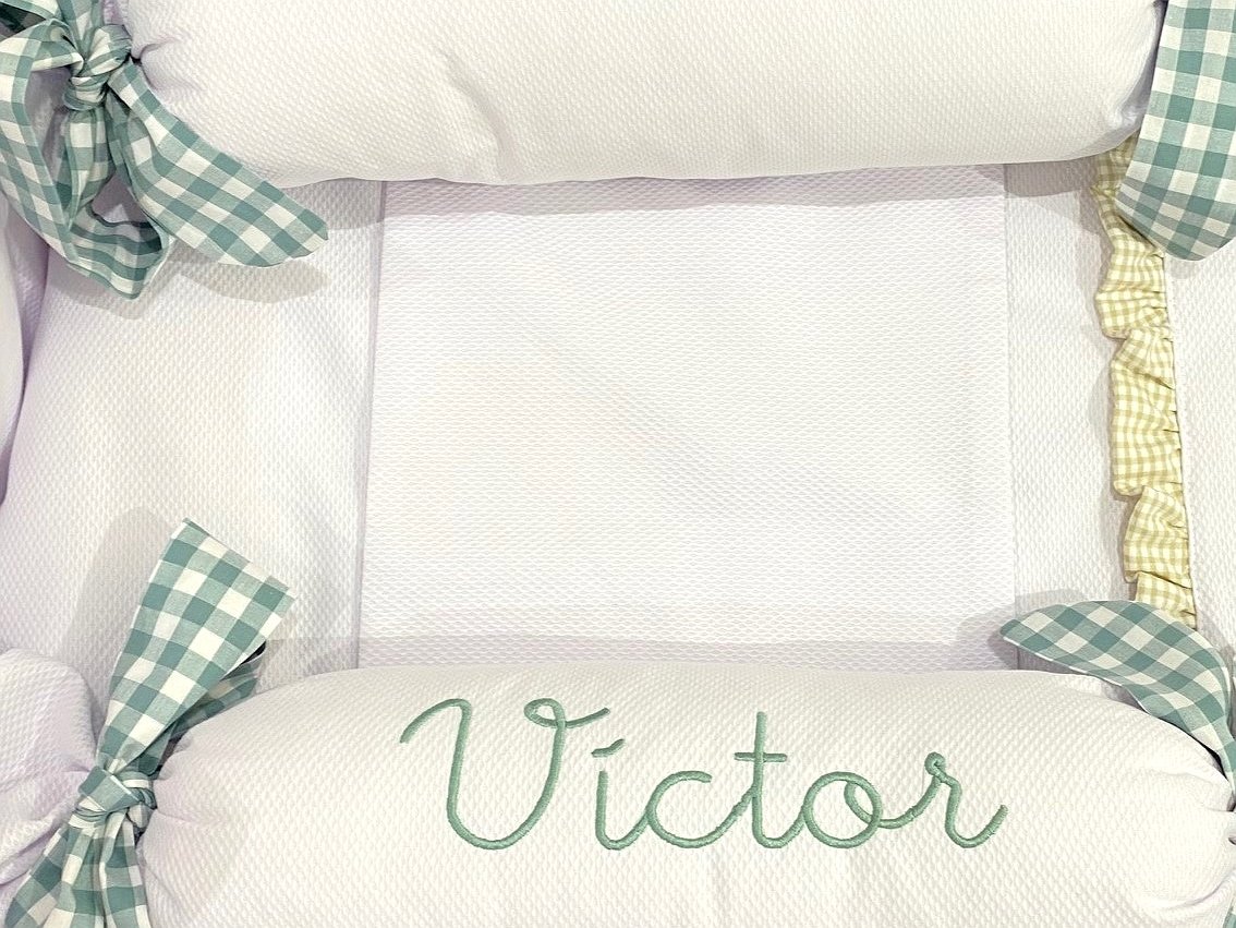 Cojín antivuelco doble con nombre bordado a máquina