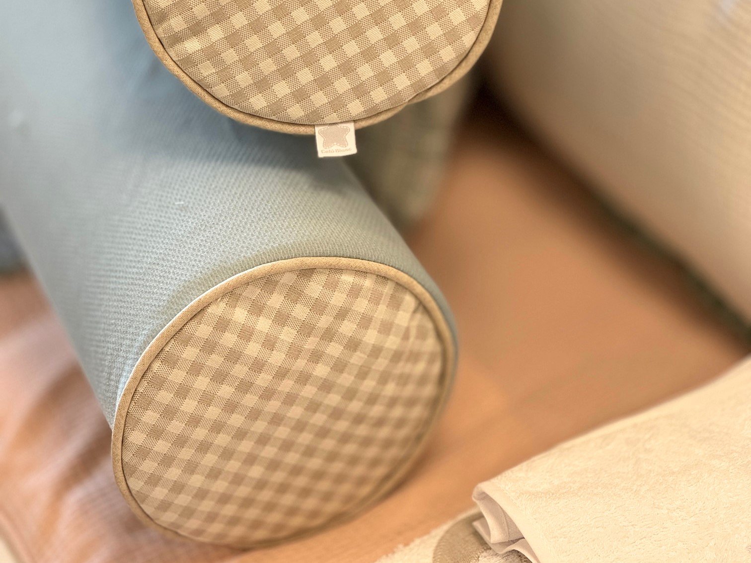 Cojín rulo decorativo, una forma ideal para colocar en la cama.