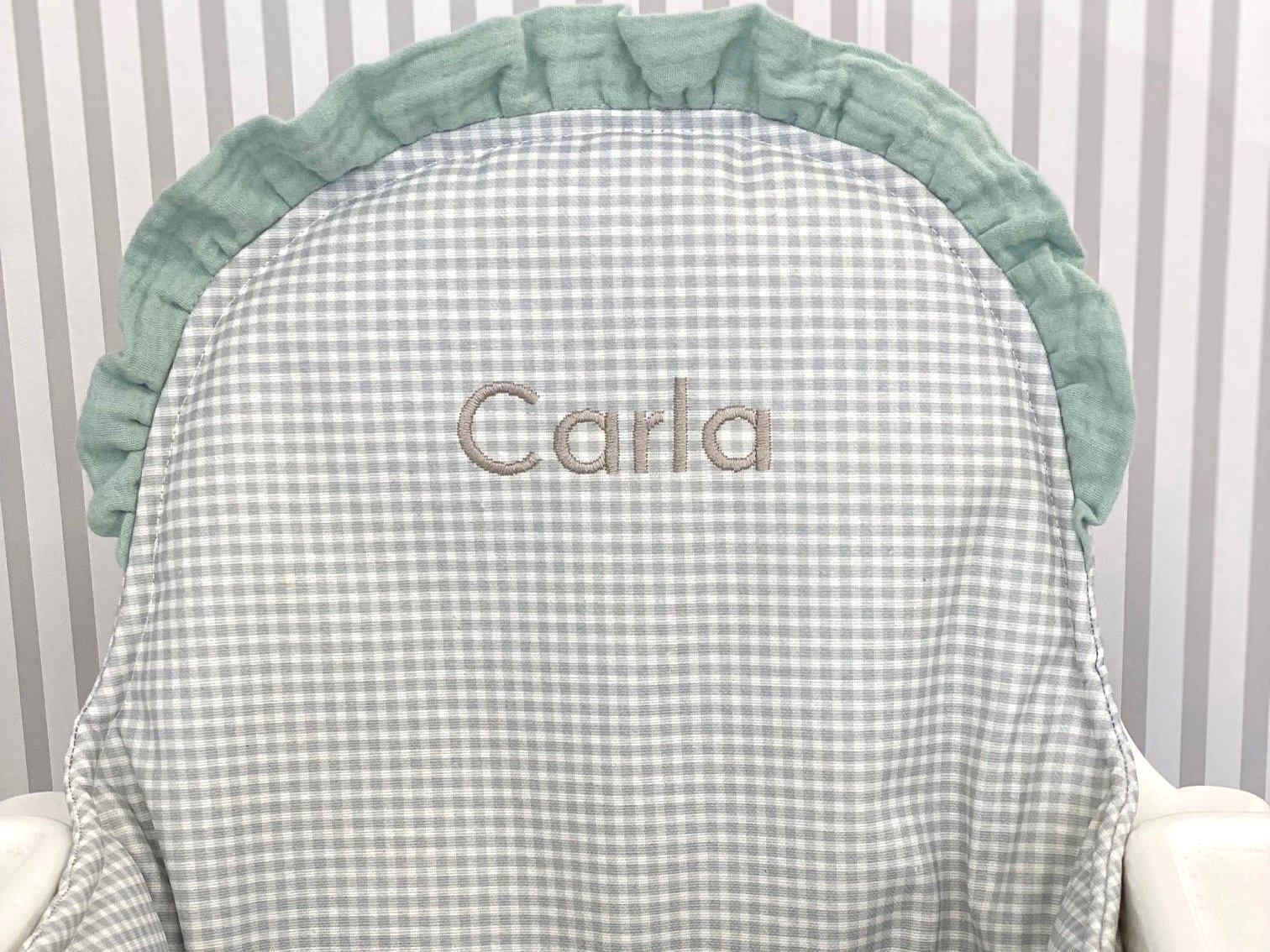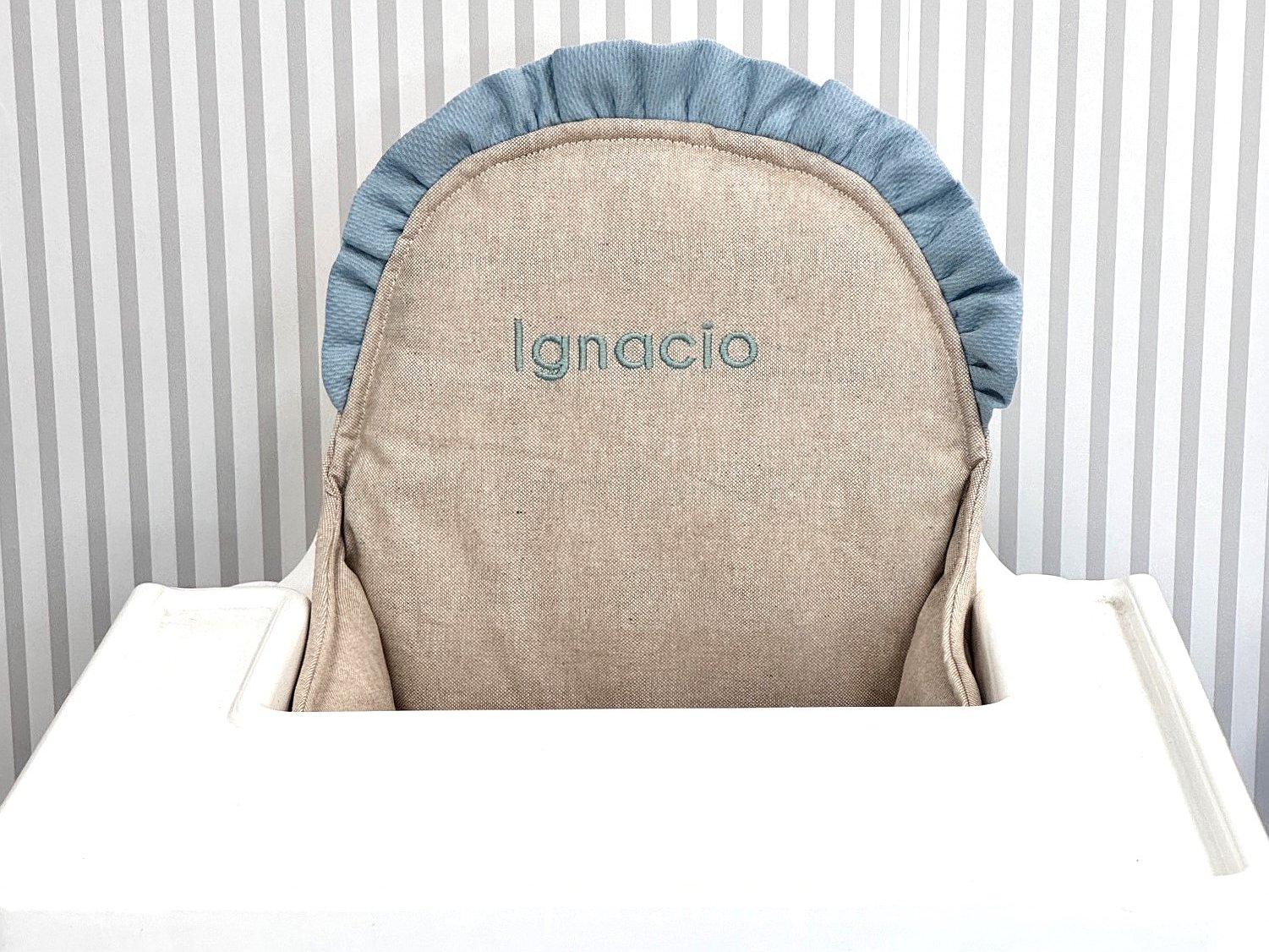 Cojín trona Ikea Antilop resinado con volante personalizado con las telas que te proponemos en resinado que se limpian facilmente.