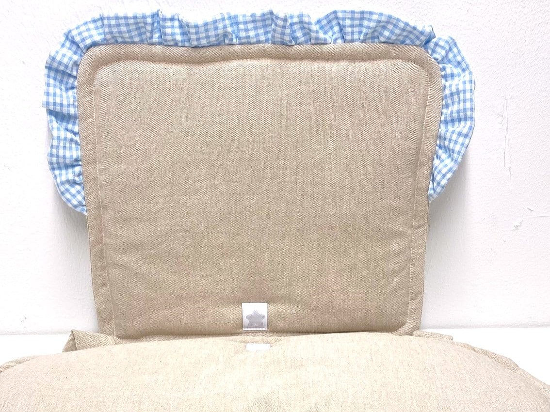 Cojín Trona Safety 1st Timba resinado con volante personalizado con las telas que más te gusten. Se compone de las dos piezas, asiento y respaldo.