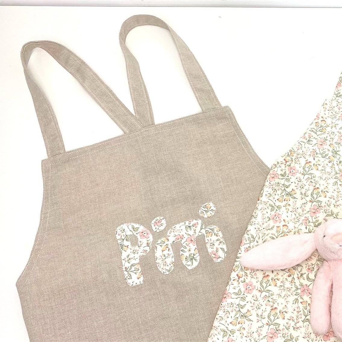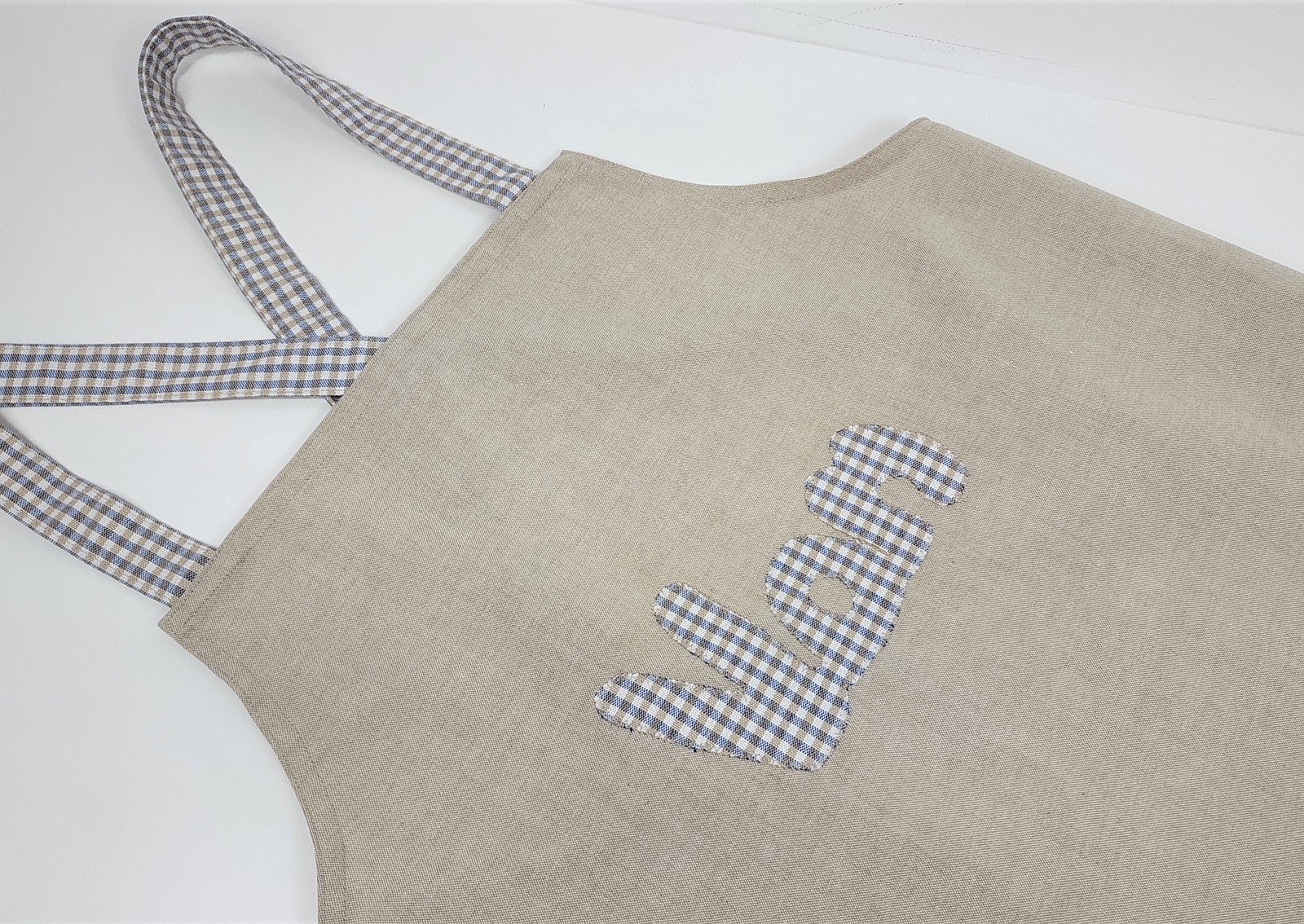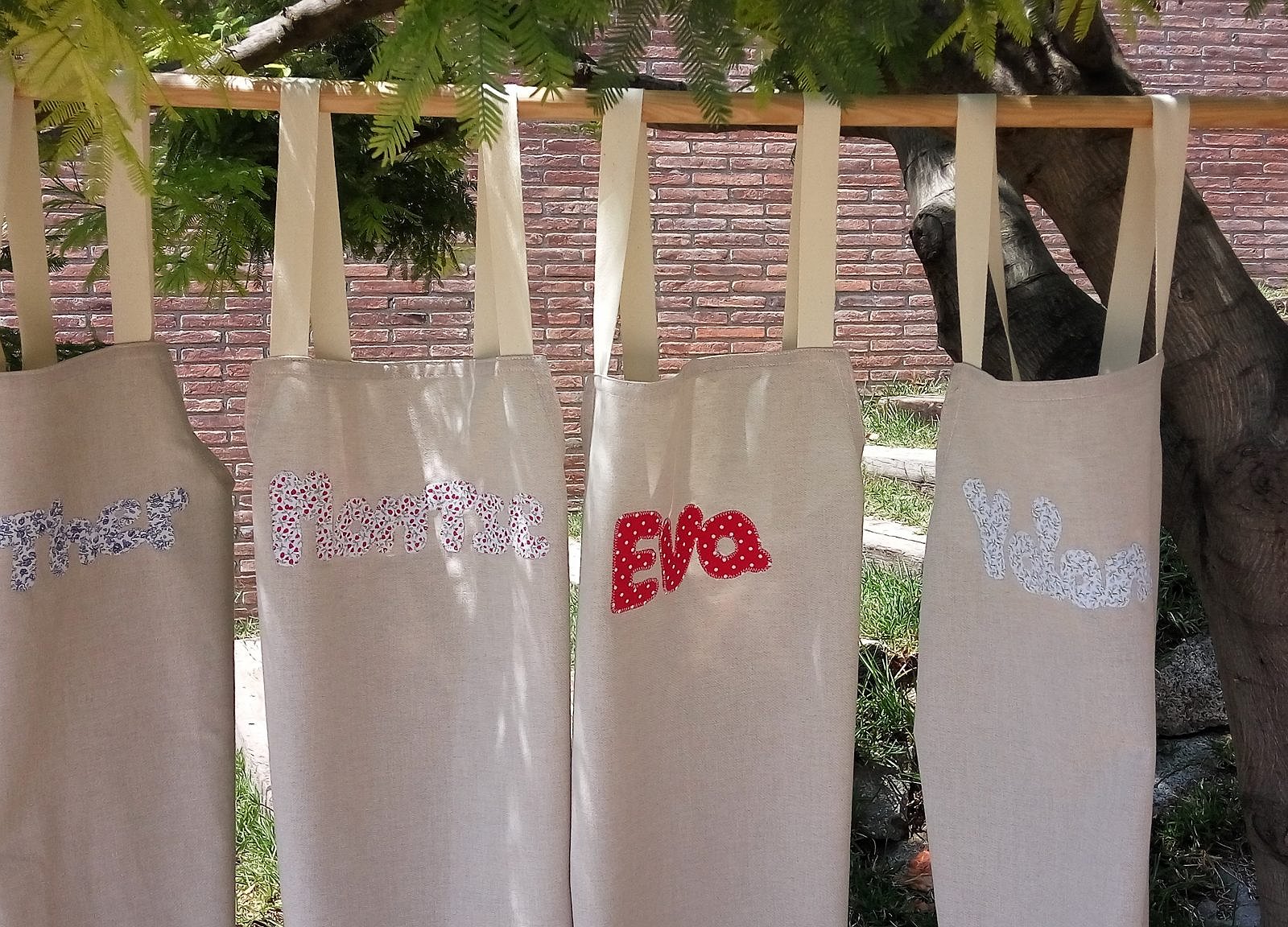 Puedes elegir la tela de loneta que más te guste para personalizar el delantal, y si quieres también puedes incluir el nombre con la tela que te guste.