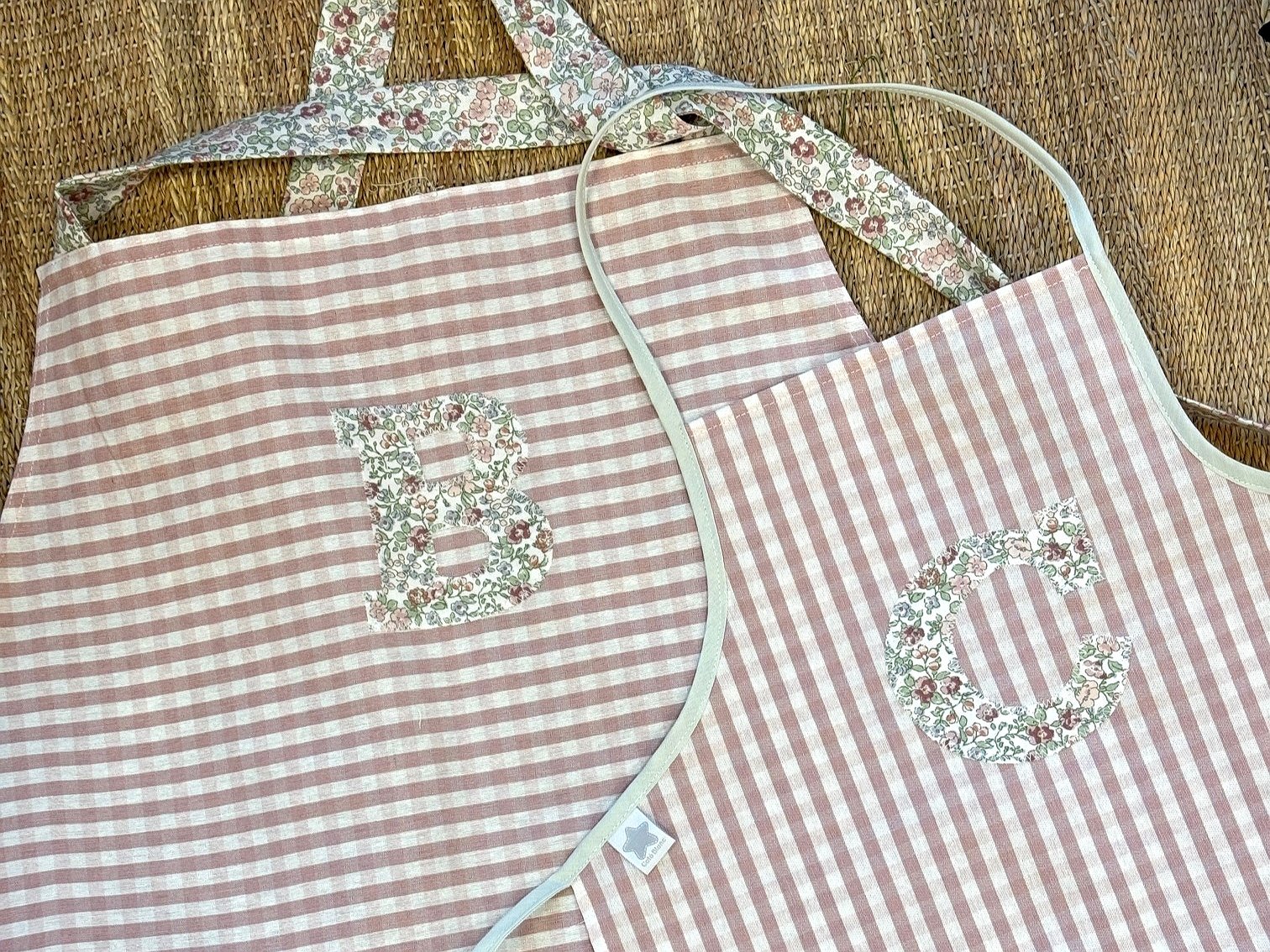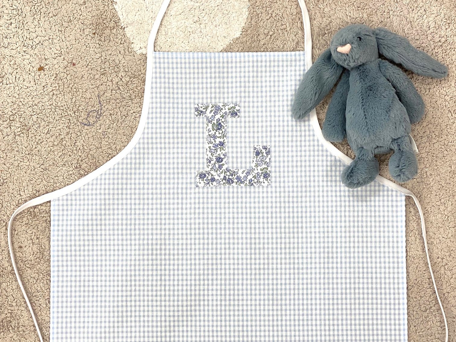 Delantal para niños con inicial, personalizado con la tela que más te guste.