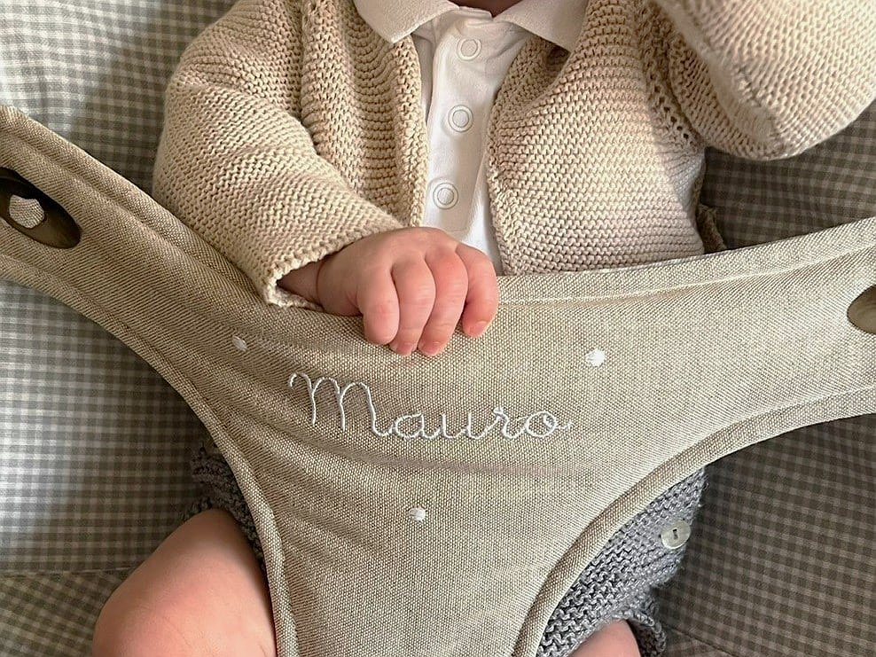 Funda Hamaca Babybjorn en lino bodoque blanco resinada y reversible combina con el resinado que más te gusten y te la confeccionamos.