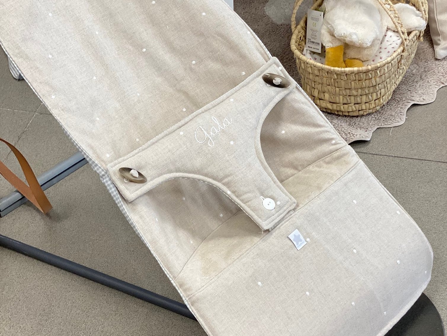 Funda Hamaca Babybjorn reversible y resinada combina dos tejidos que más te gusten y te la confeccionamos. Para colocar en vez de la funda original.