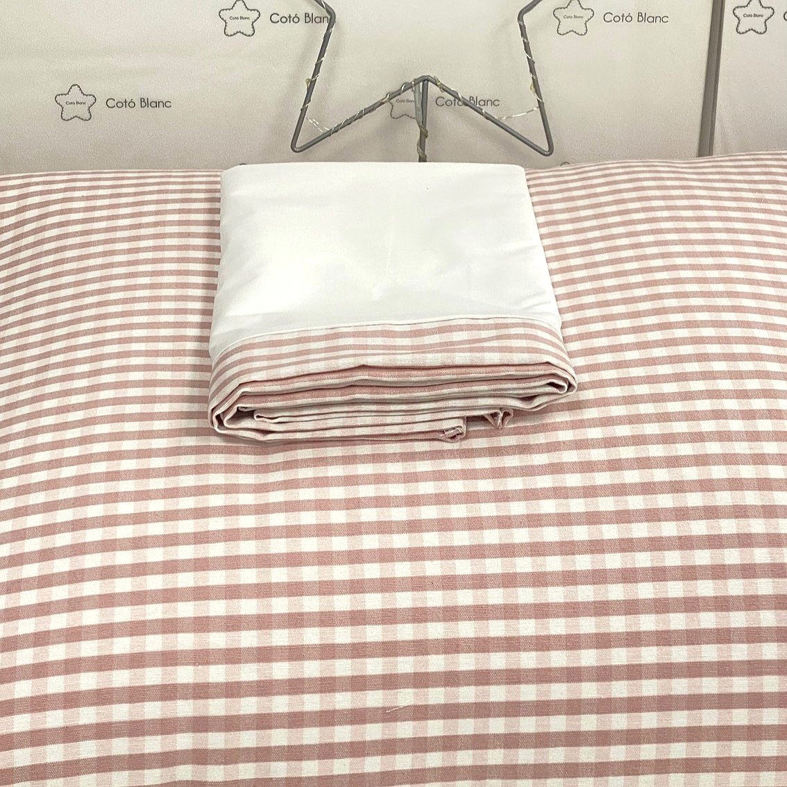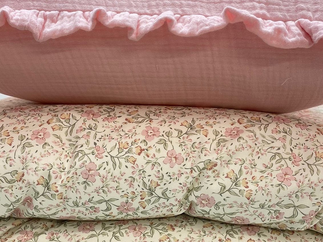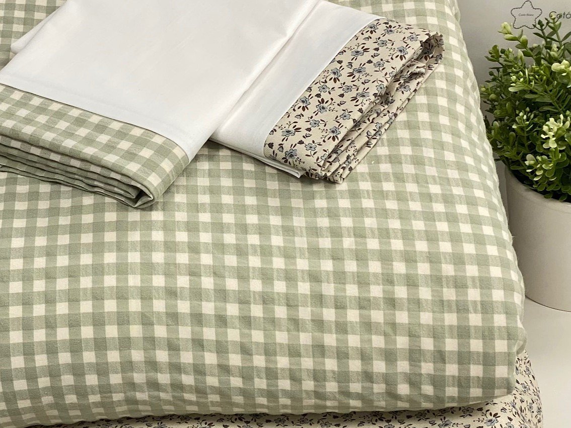 En cualquier opción que elijas, siempre incluye funda de almohada en color blanco 100% algodón con la cenefa a conjunto igual que la tela que hayas elegido.
