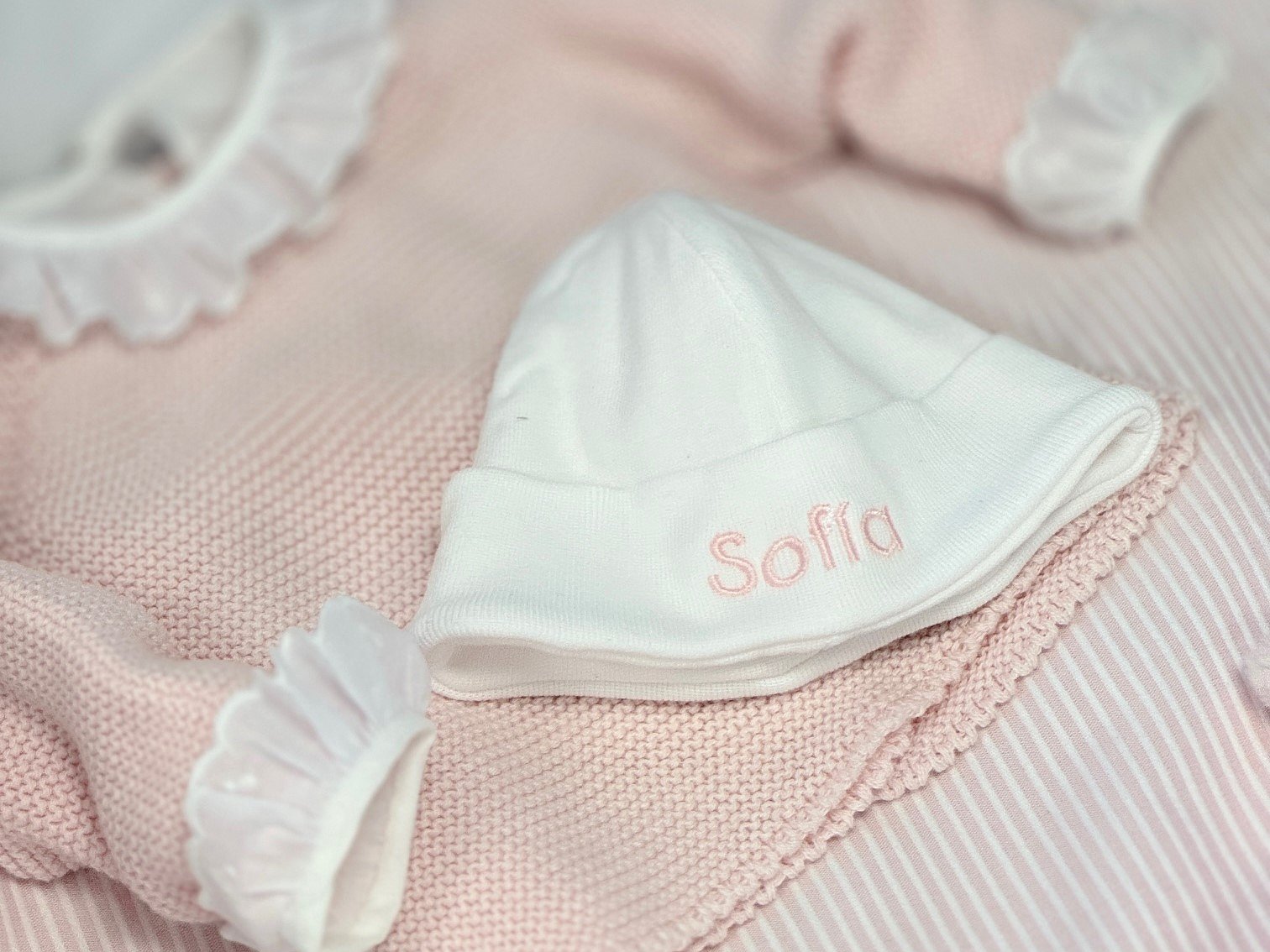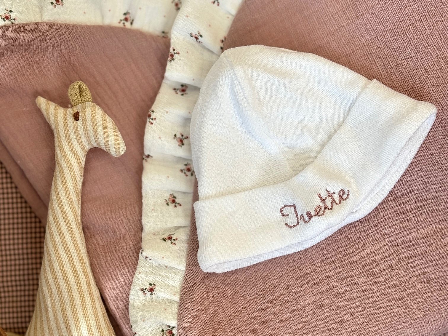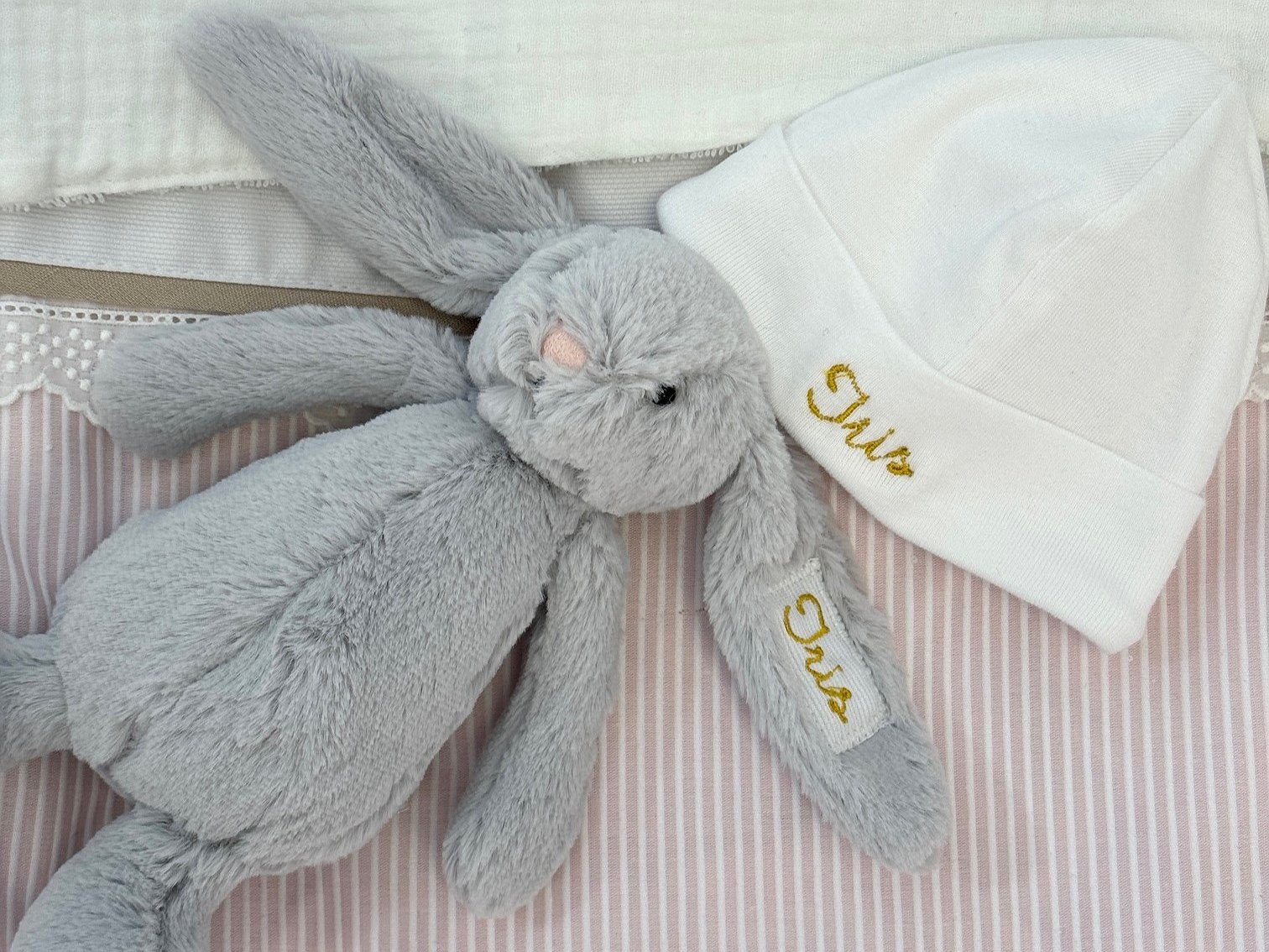 No incluye manoplas ya que no son indispensables en la lista del hospital. \n \nPuedes personalizarlo con el nombre de tu bebé y en el color que más te guste.