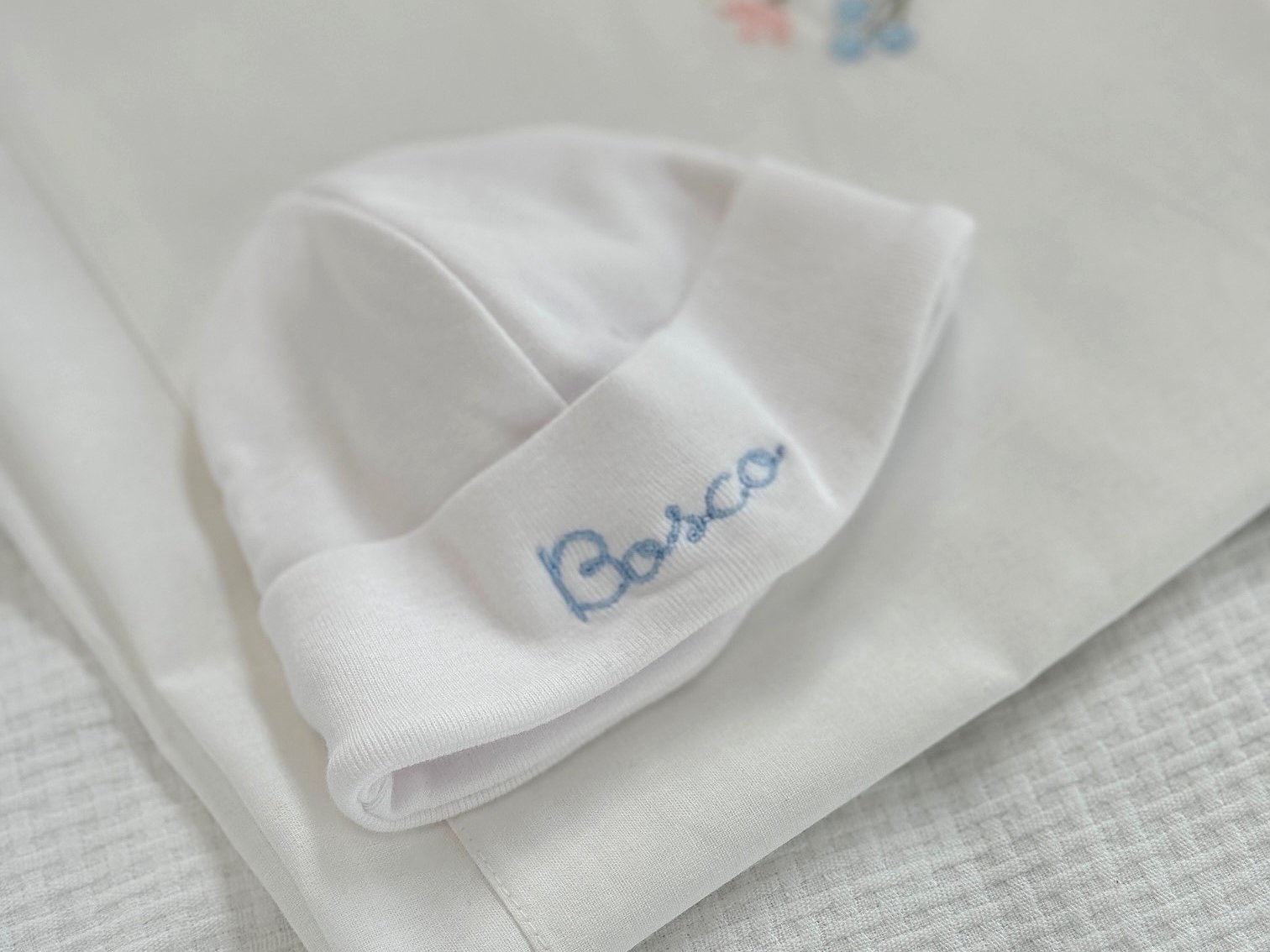 Todo de algodón 100% de alta calidad extra suave. Talla Única recién nacido. Color del gorro blanco.