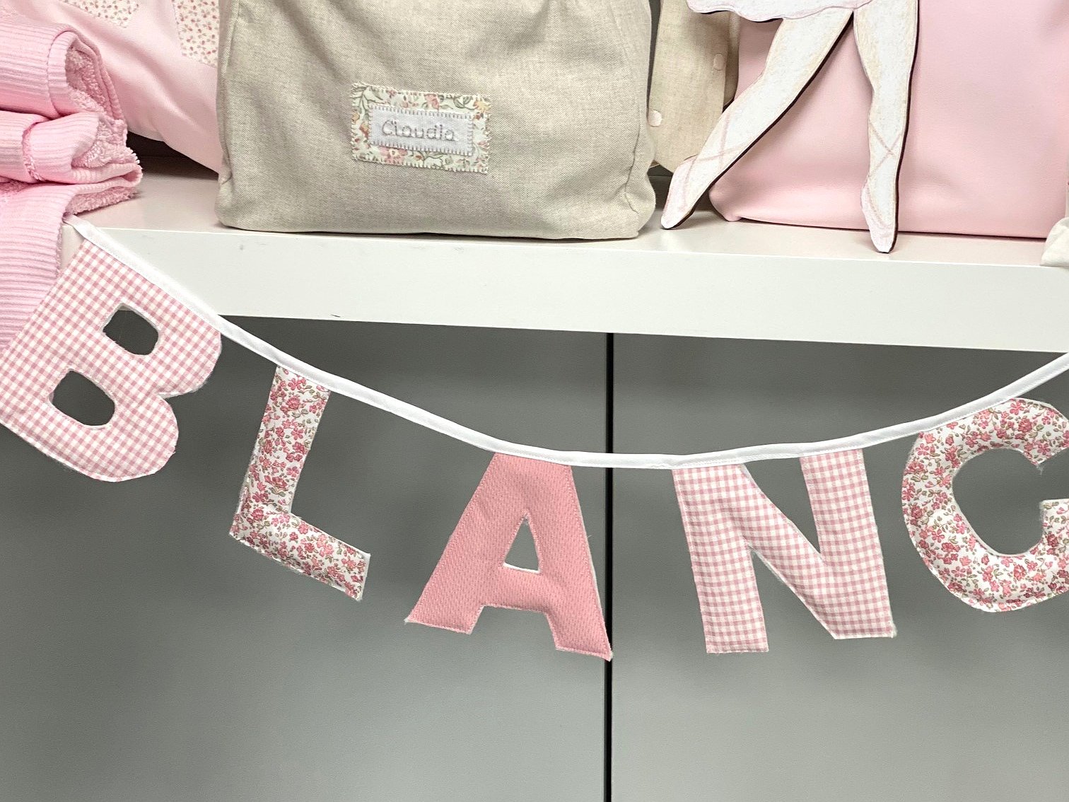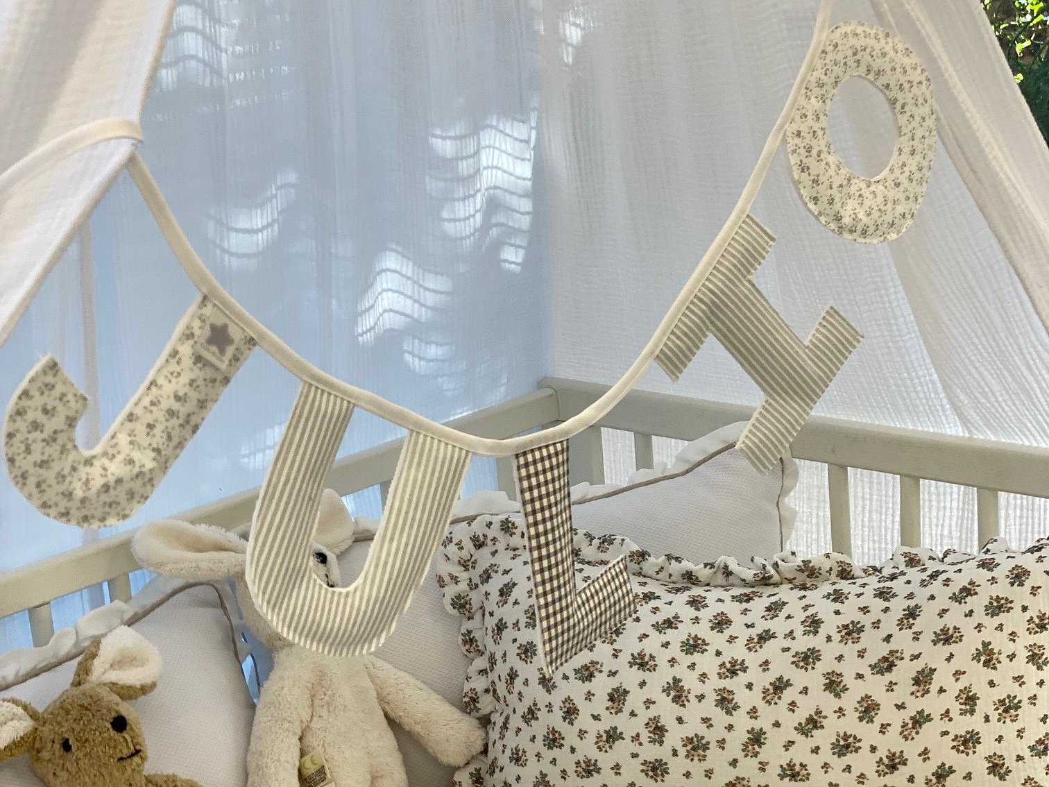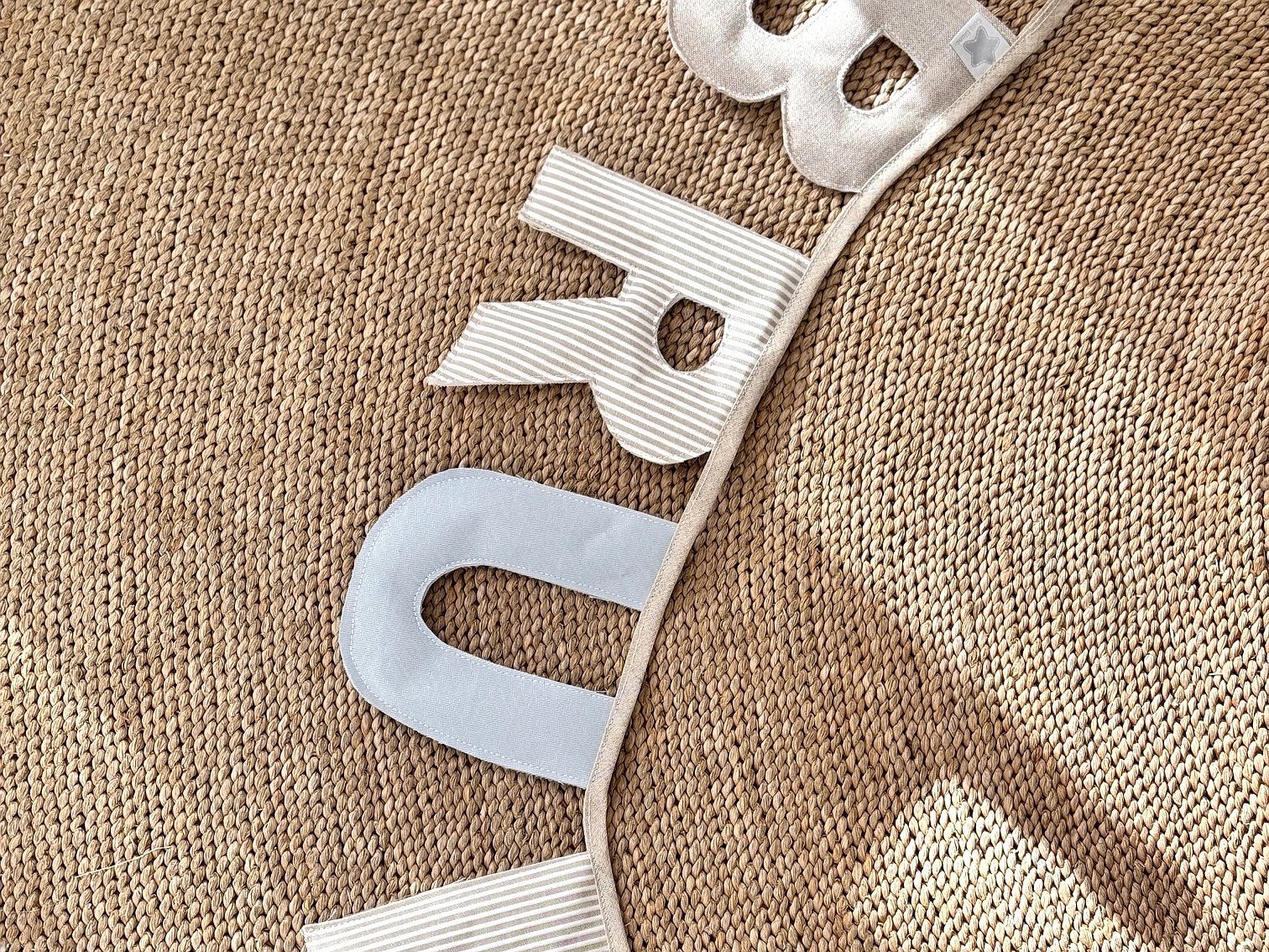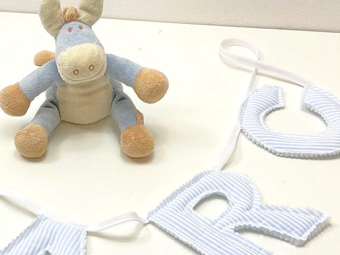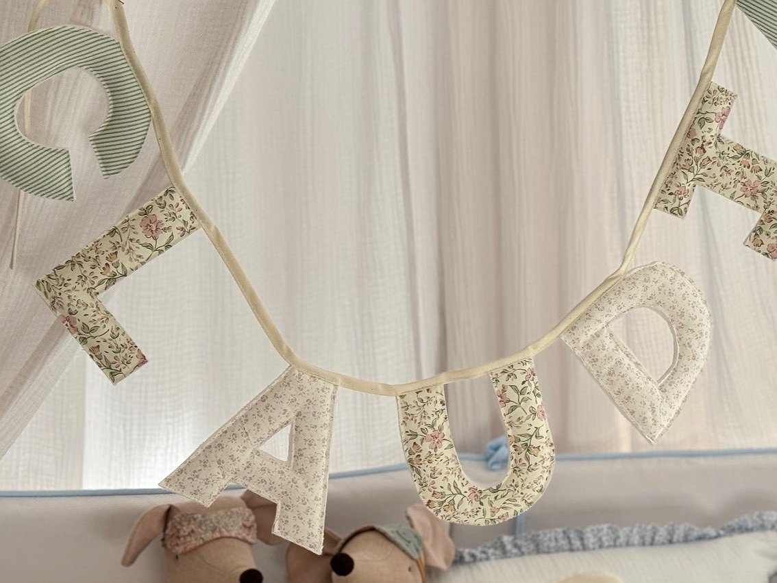 Guirnalda banderín nombre con letras para decorar la habitación de bebés y de niños.