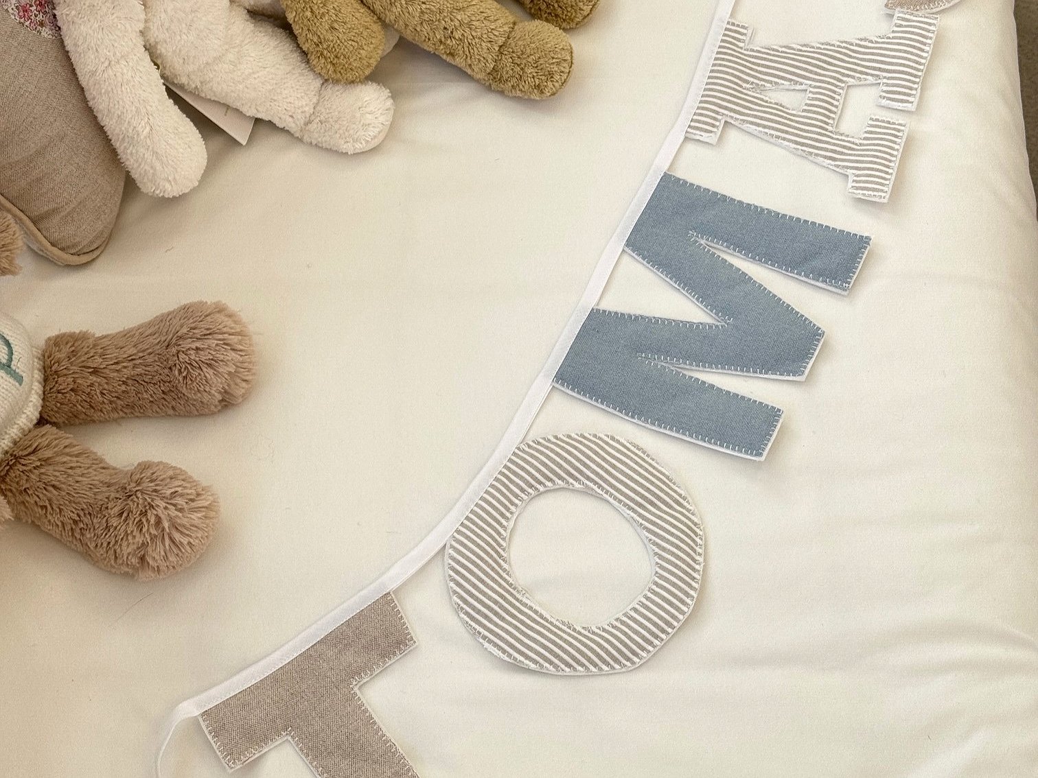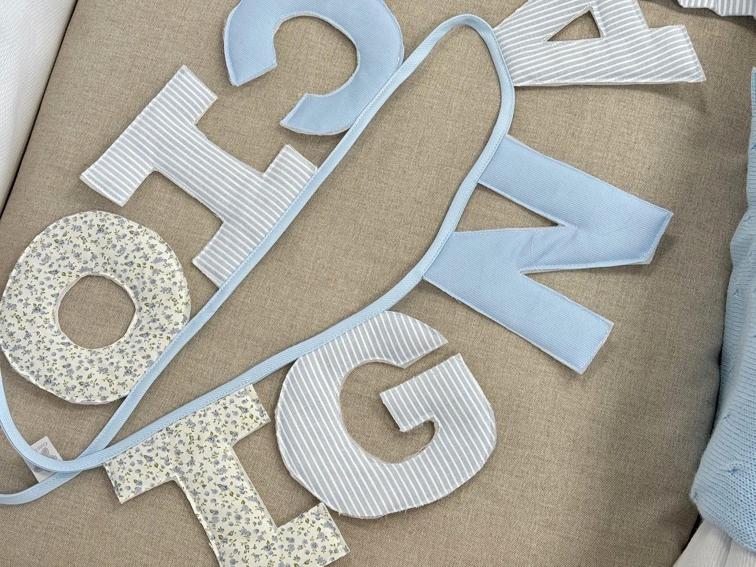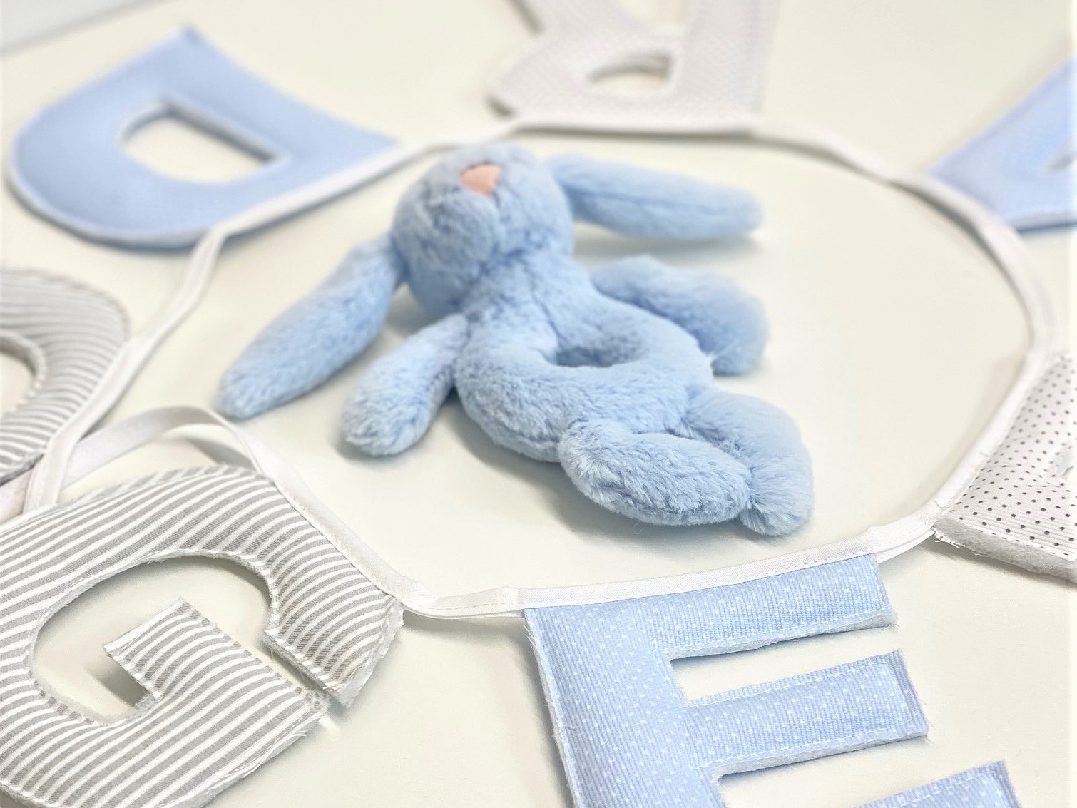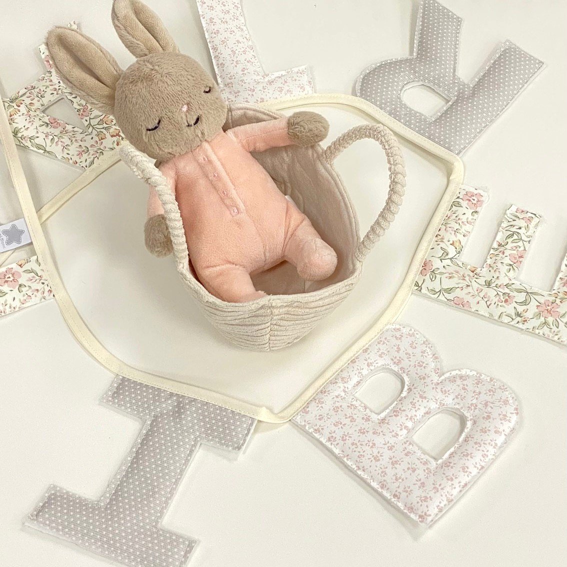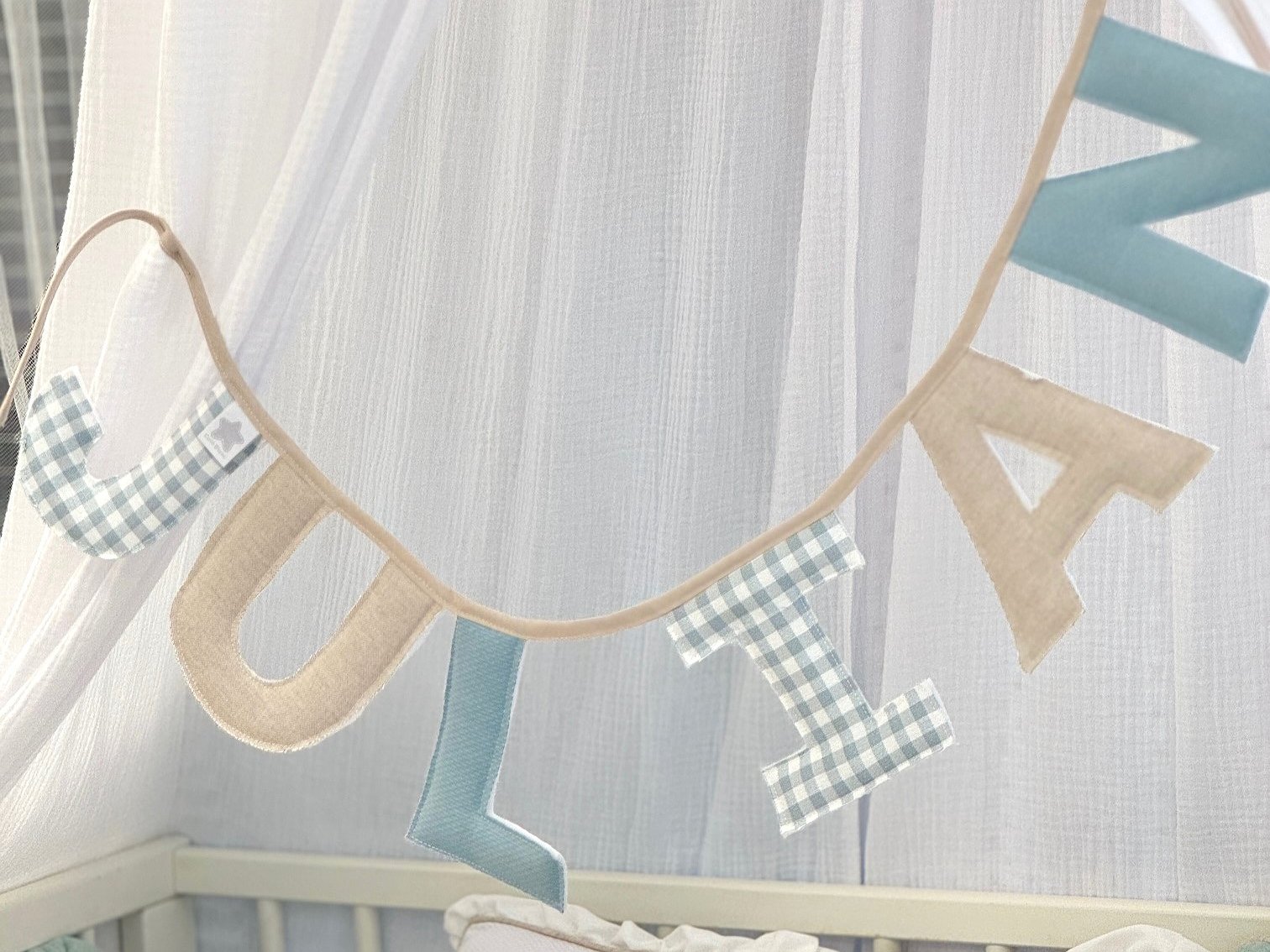 Guirnalda banderín nombre con letras para decorar la habitación de bebés y de niños.