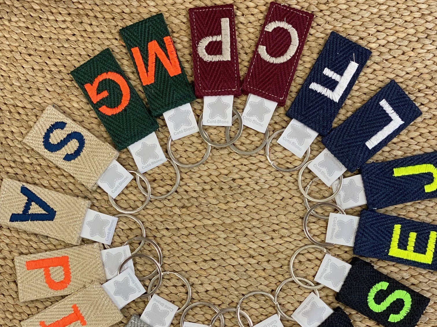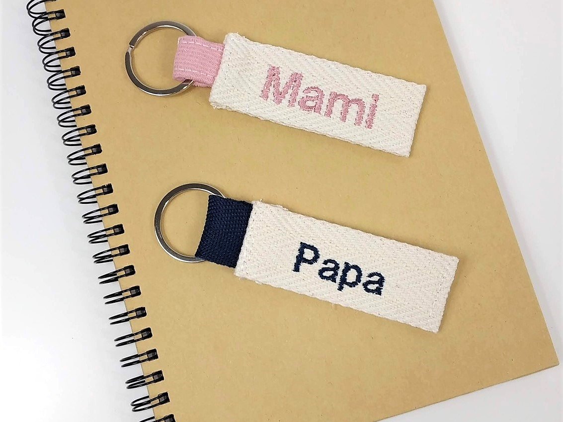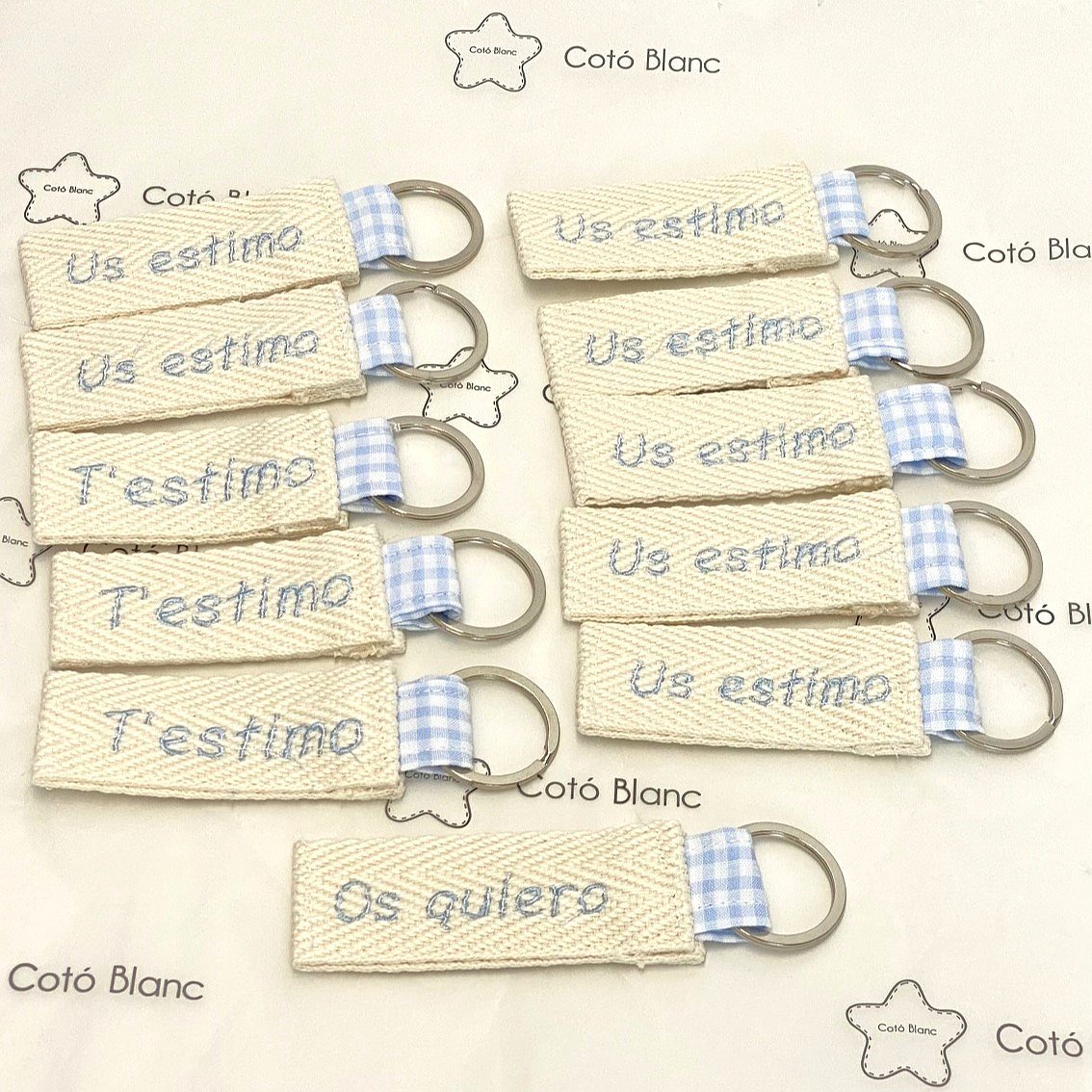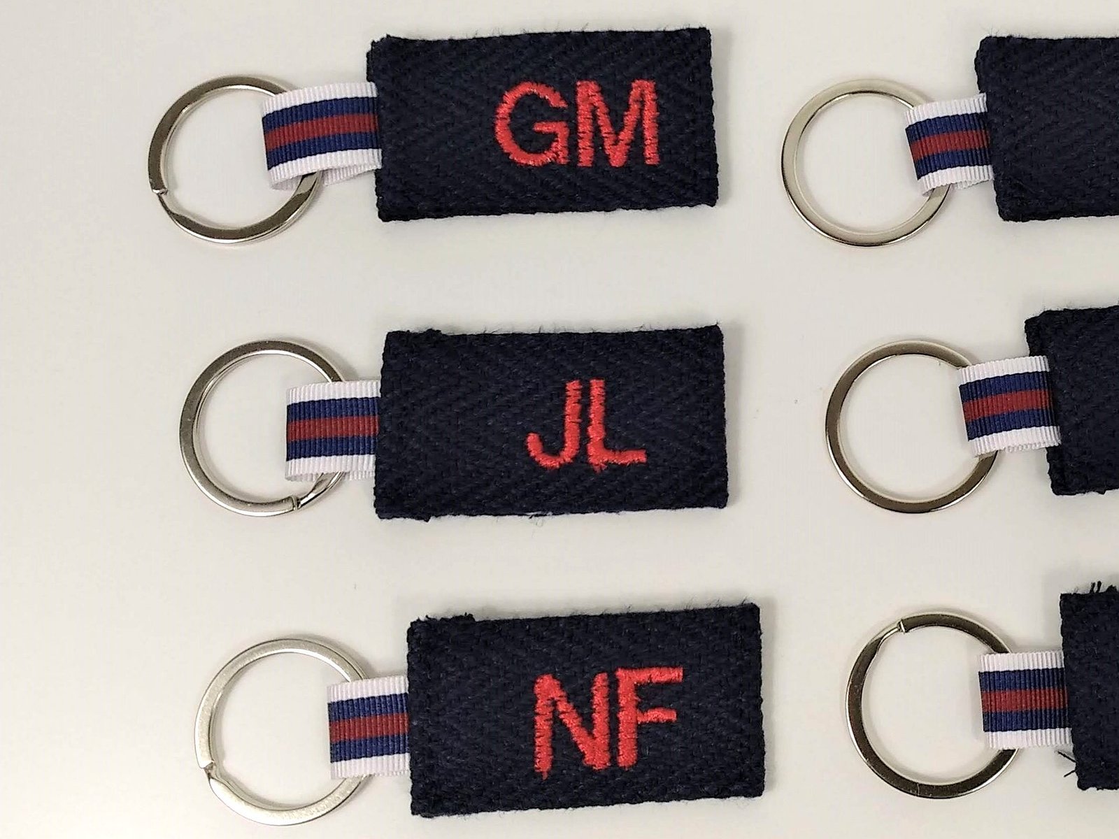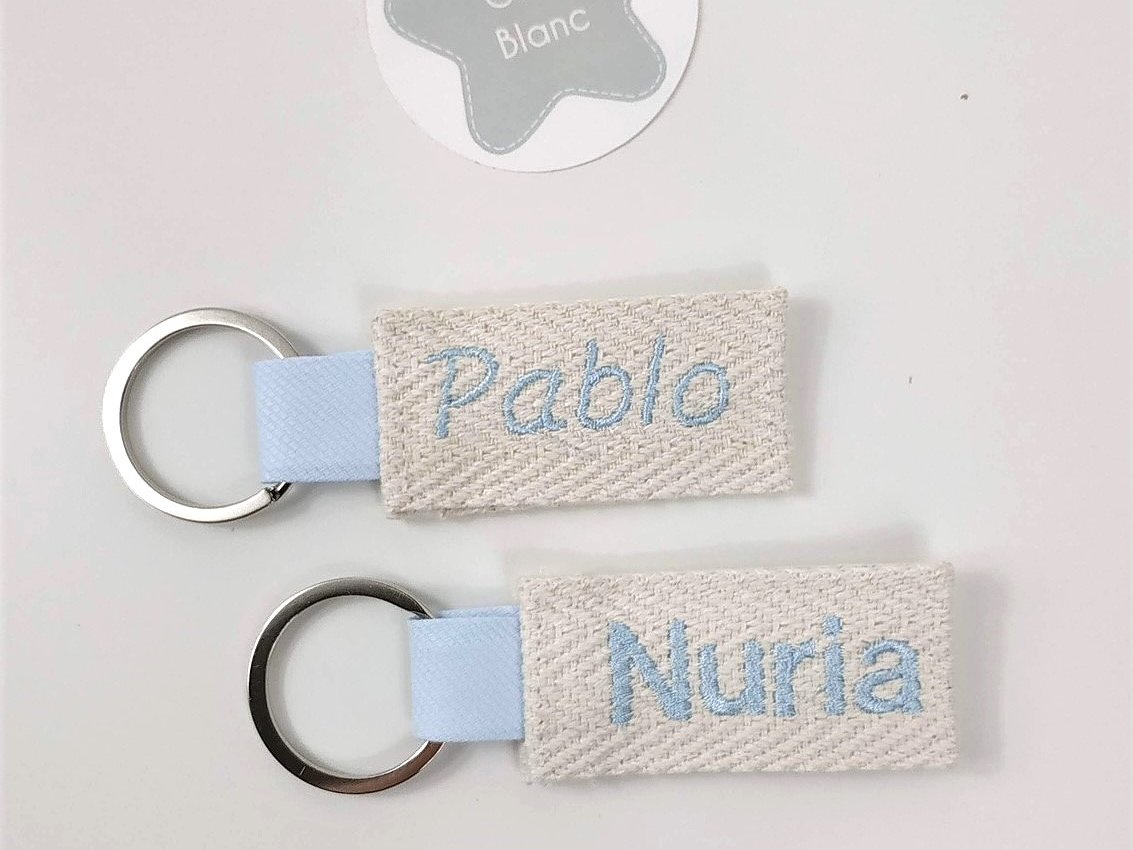 Llavero con nombre bordado sobre cinta . Se trata de un llavero que puedes personalizar con tu nombre o con las iniciales que tu quieras.