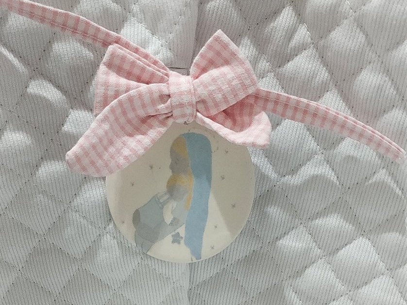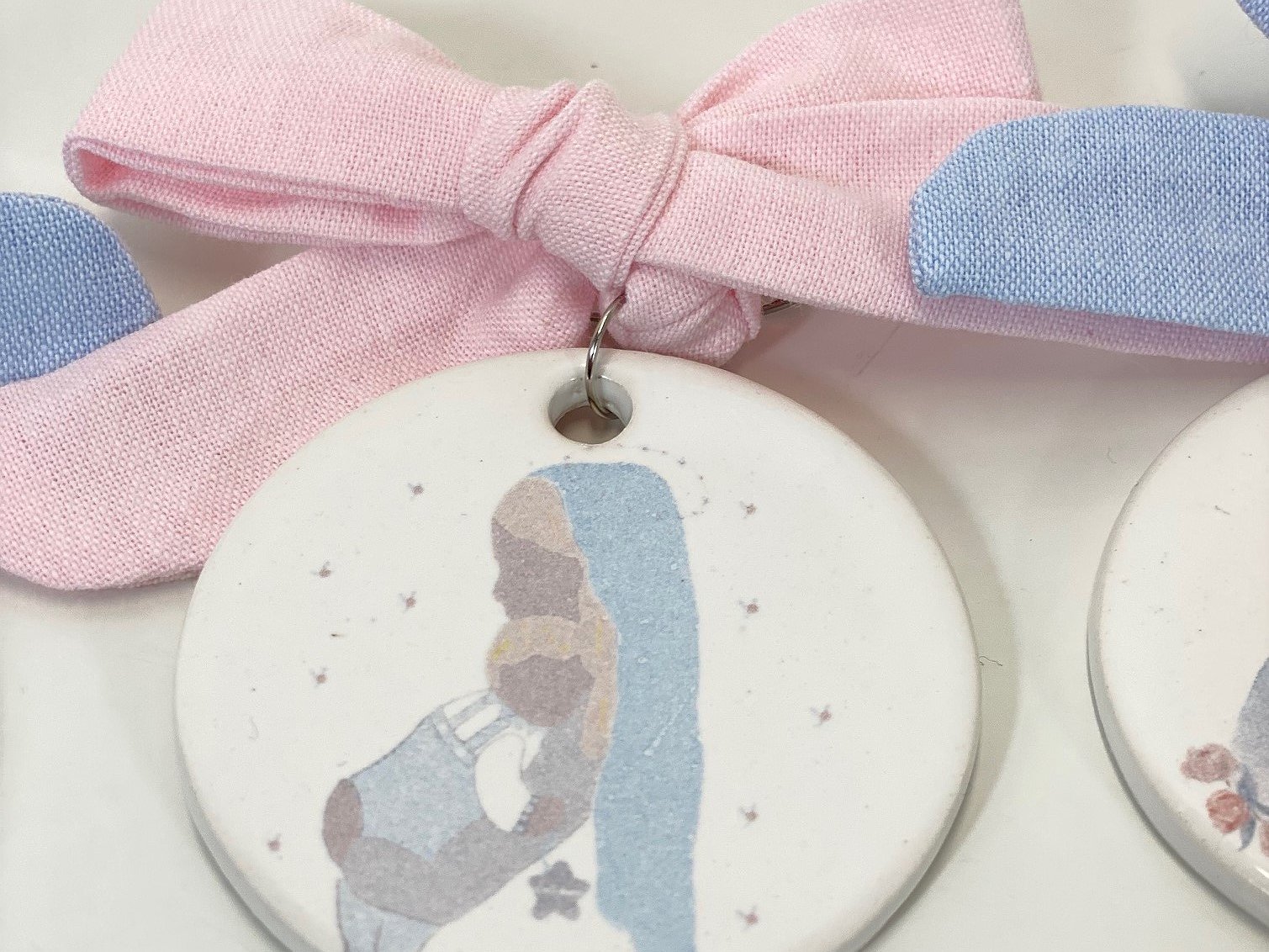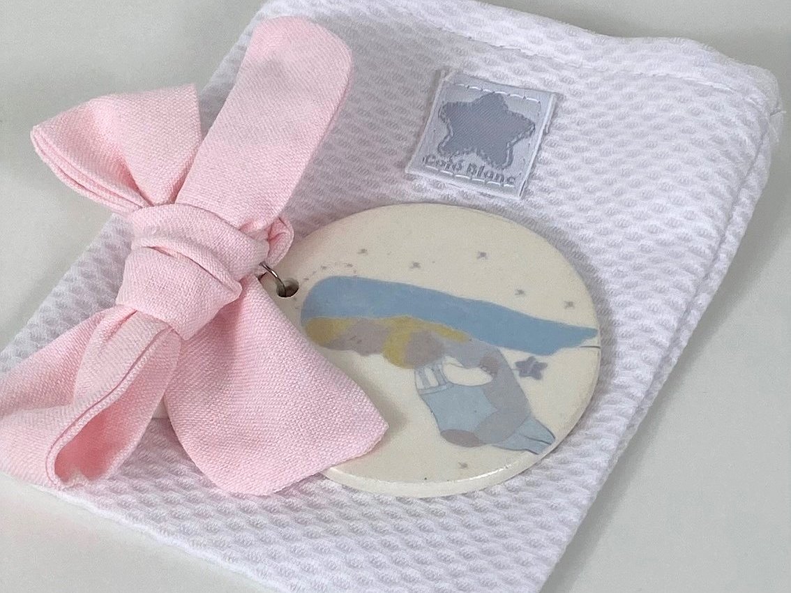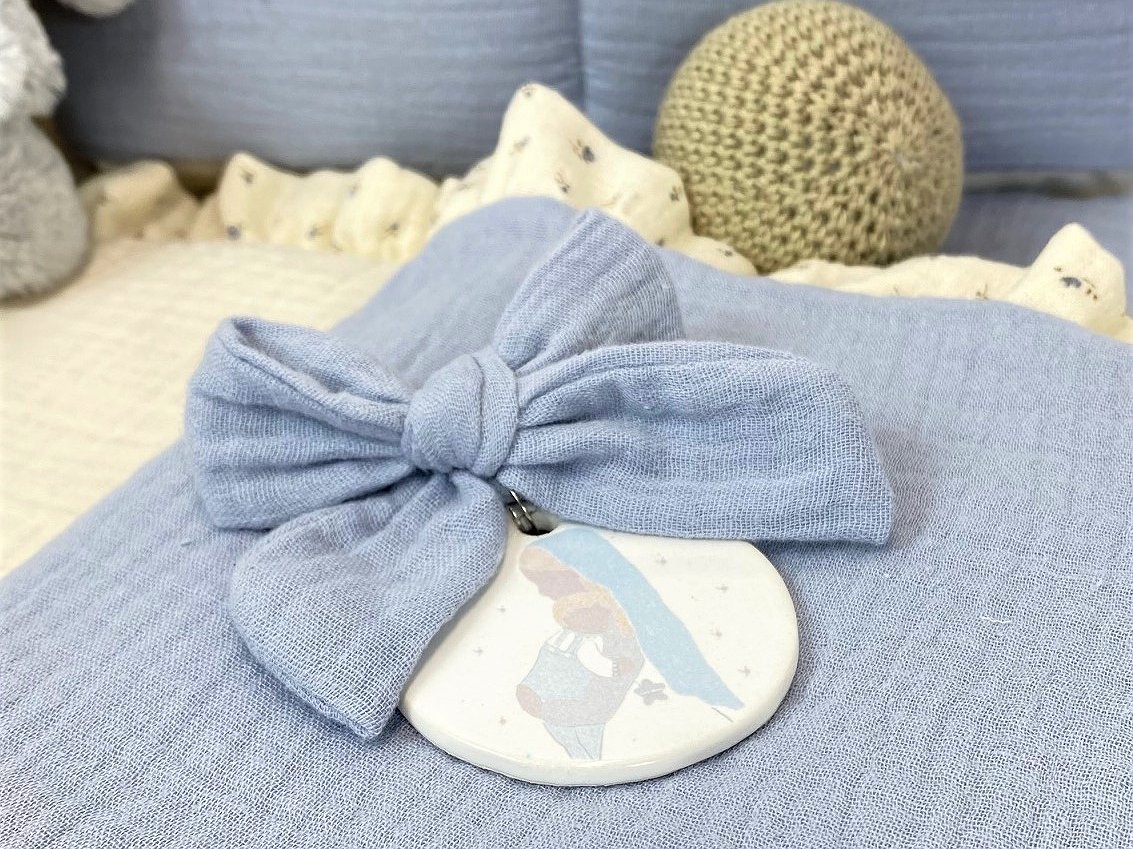 Medalla para cuna o capazo en cerámica virgen Azul , exclusivo diseño de Cotó Blanc, realizada artesanalmente.