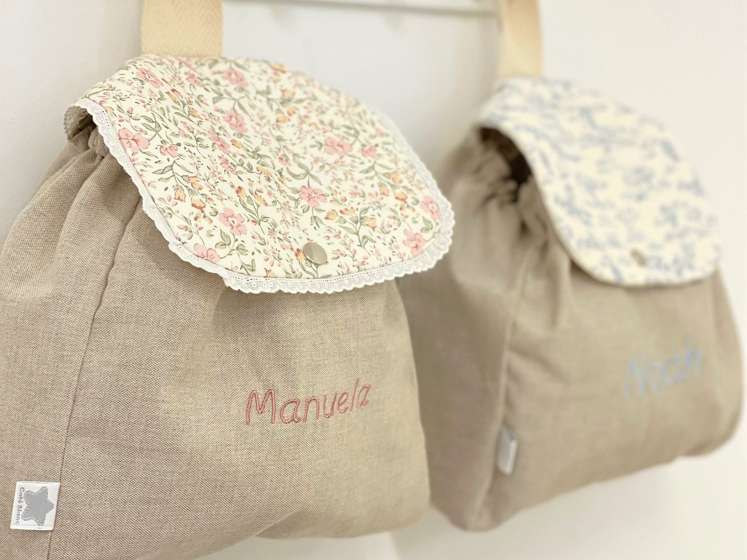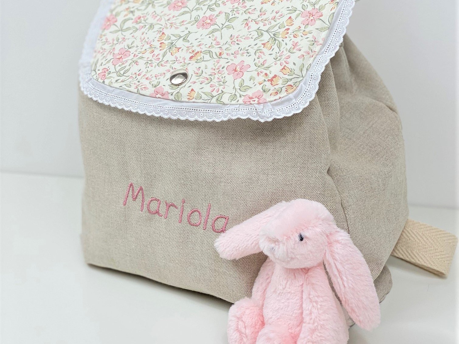 Mochila guardería de tela con puntilla