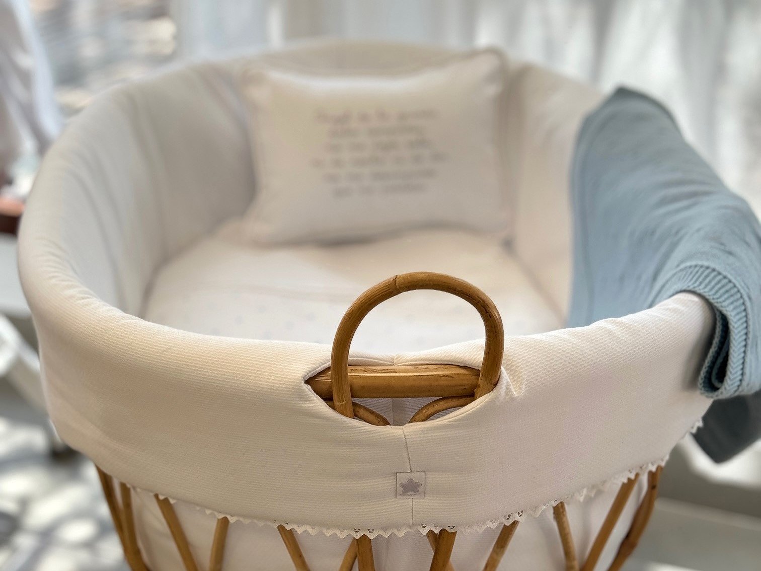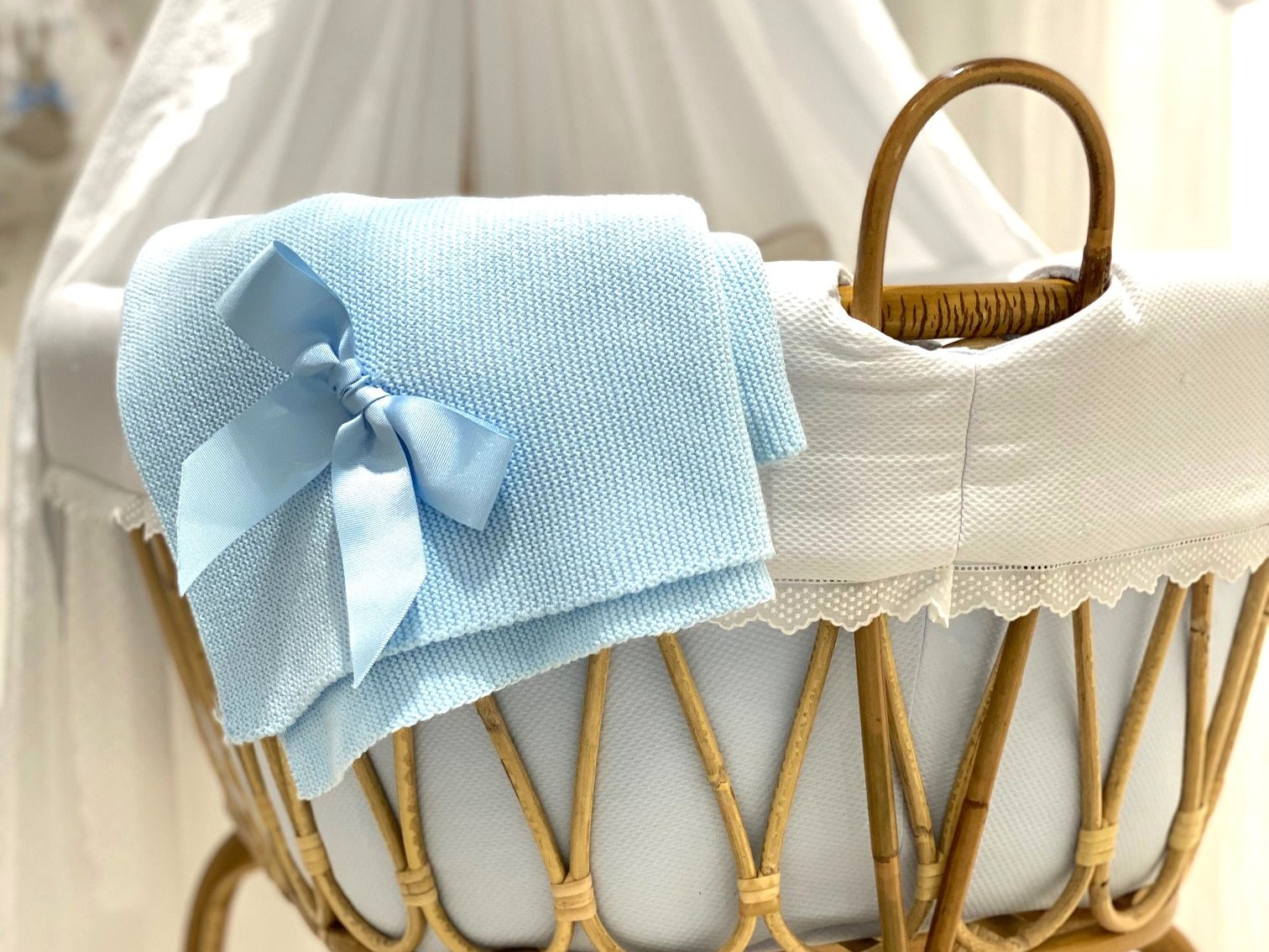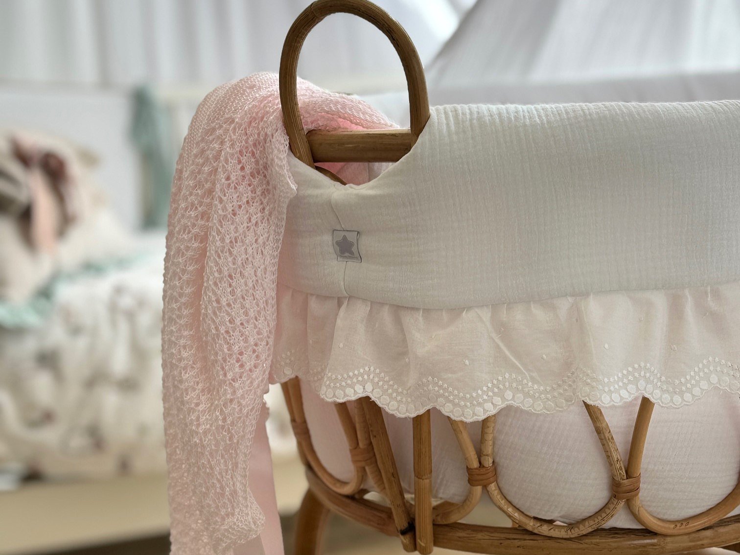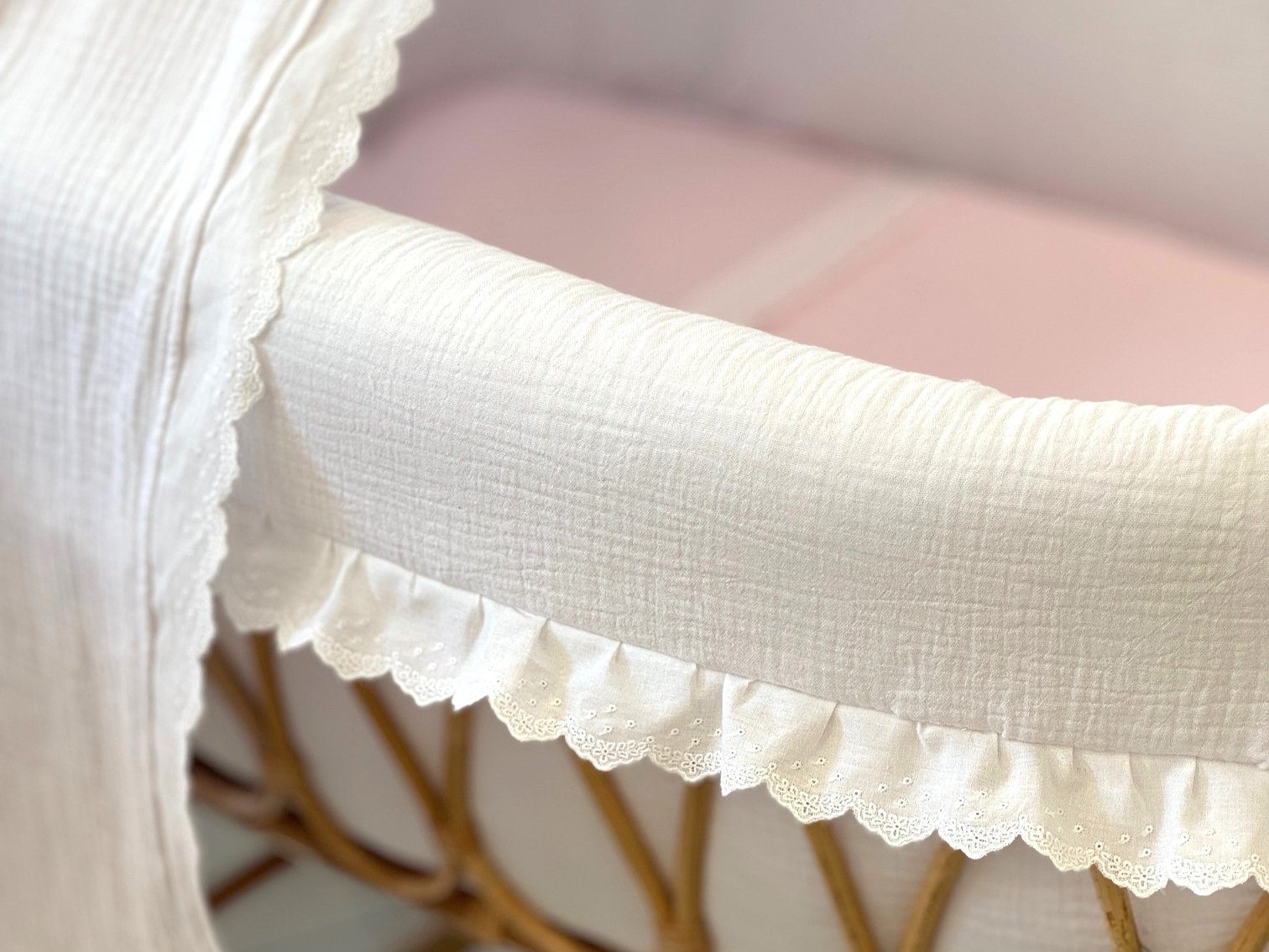 Moisés de caña de bambú ovalado XL con puntillas para recién nacido. Imagina un ambiente natural, elegante y delicado con estas mini cunas.