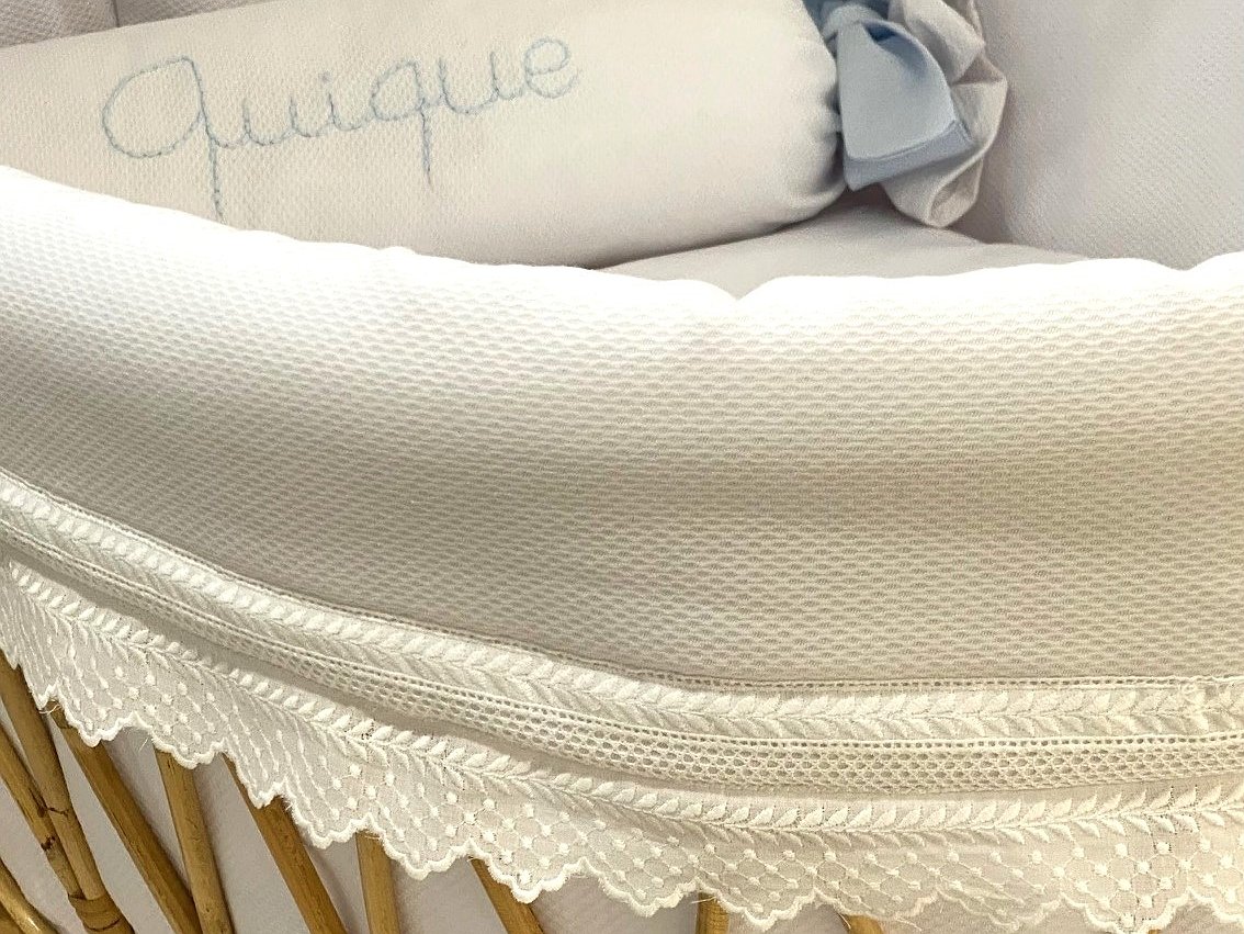 Moisés de caña de bambú ovalado XL con puntillas