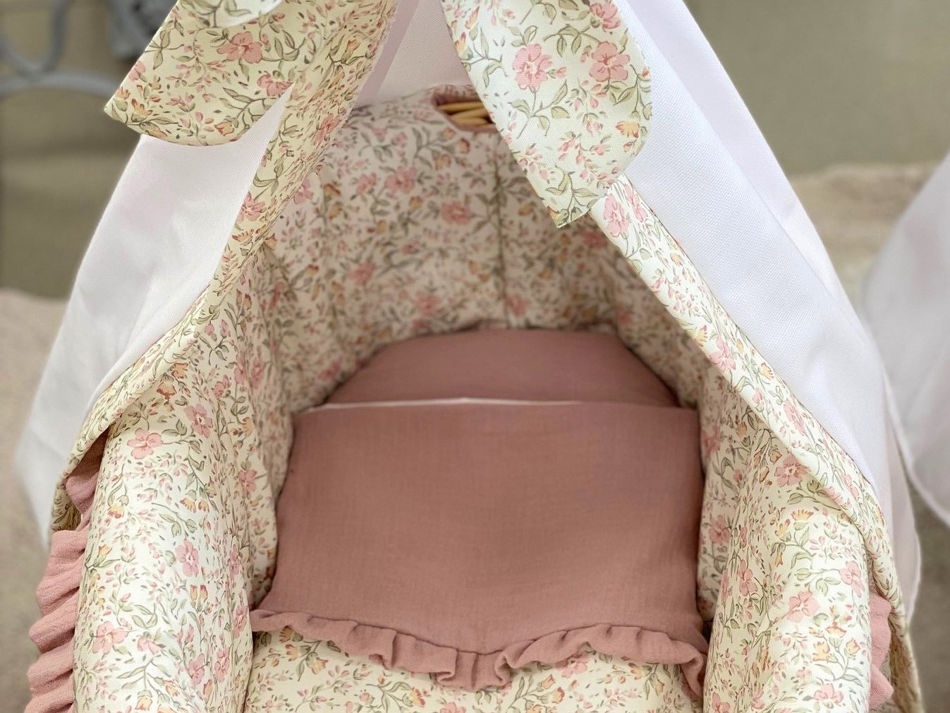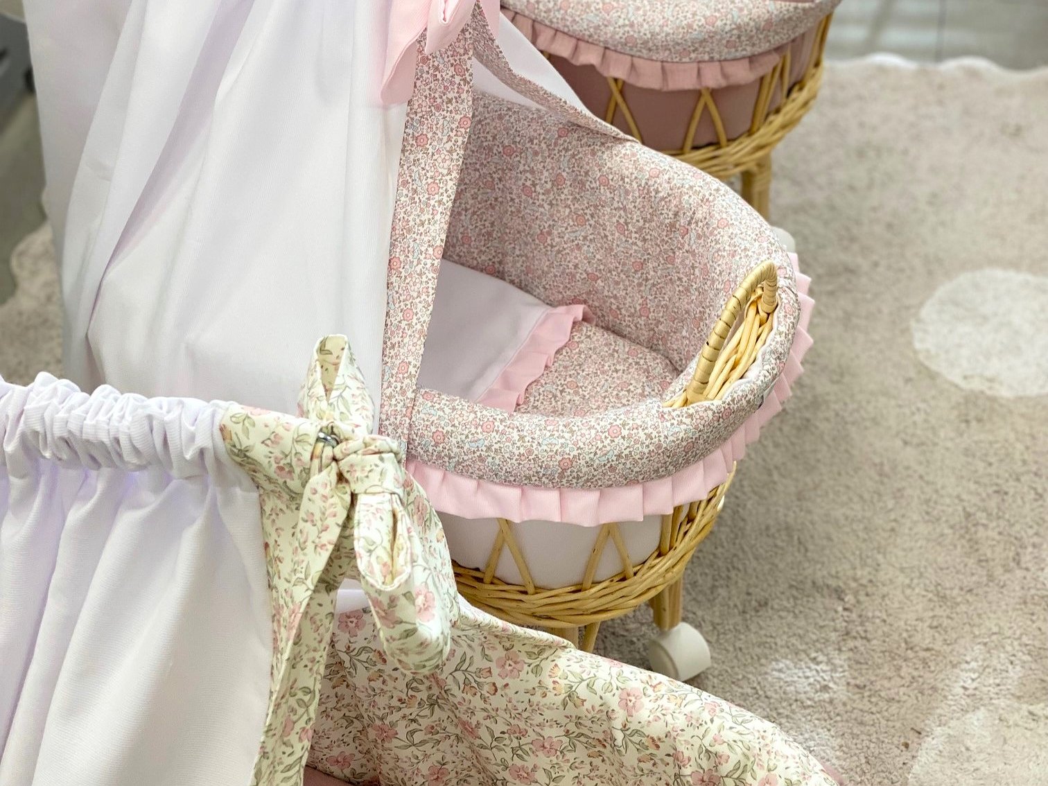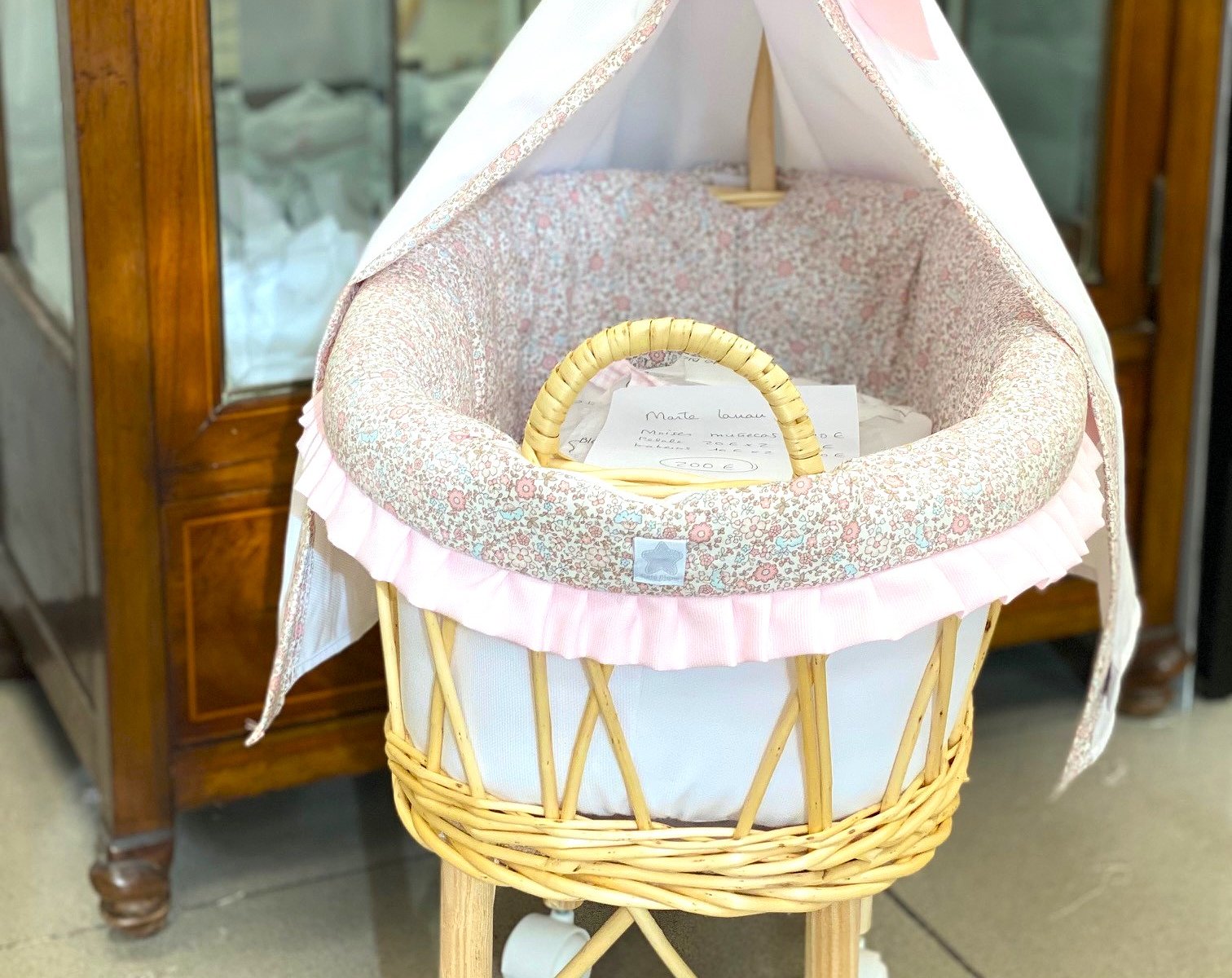 Moisés de mimbre para muñecas con vuelta personalizado