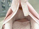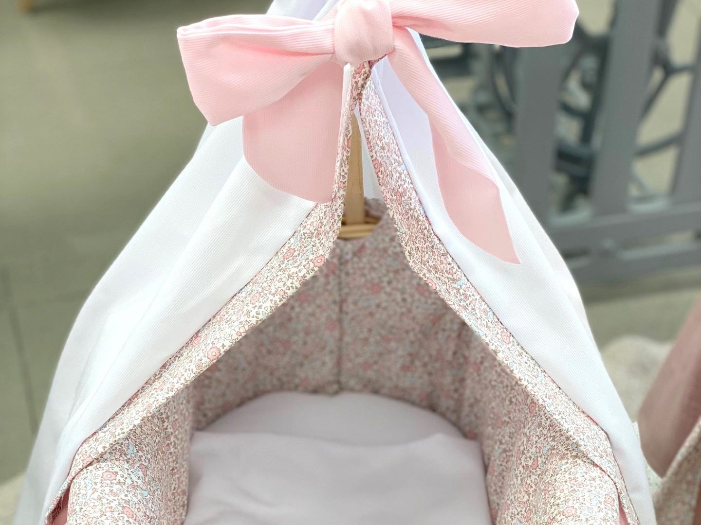 Lleva colchón en la tela bonita. Nuestro moisés para muñecas está confeccionado en nuestro taller propio.