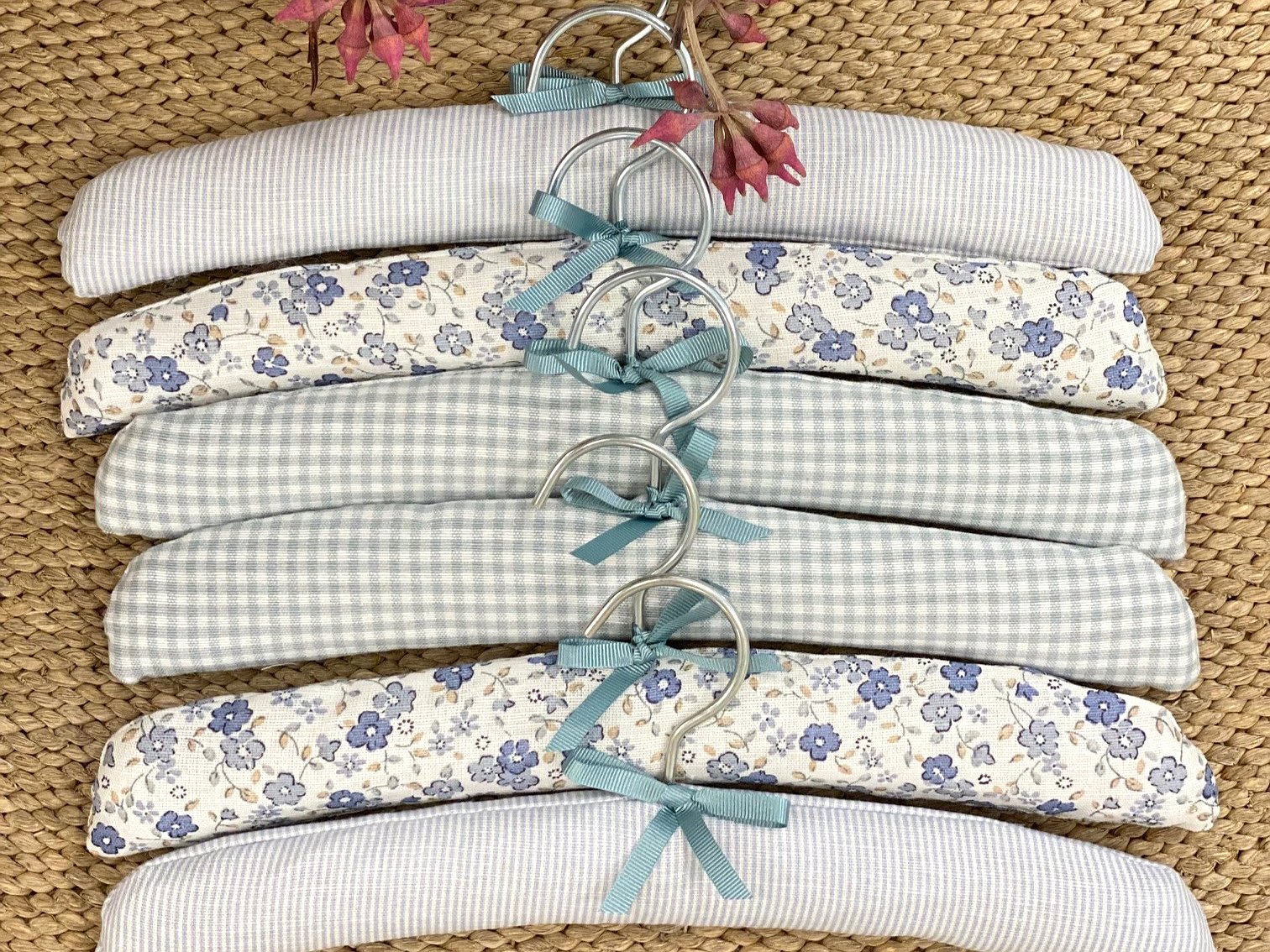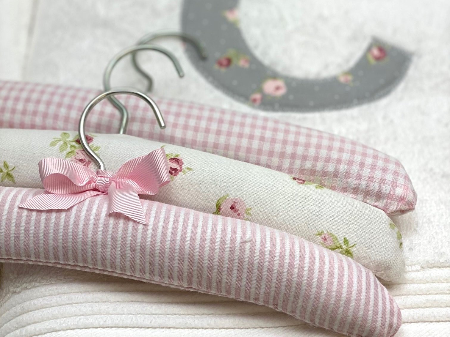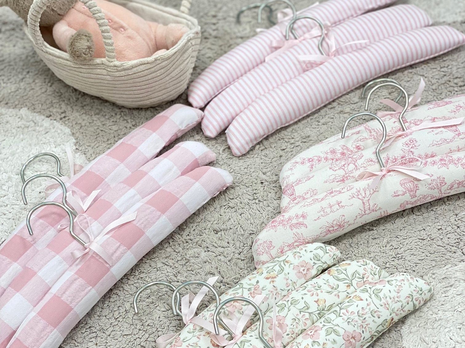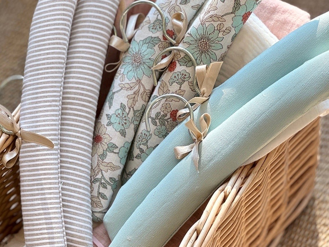 Percha forrada para bebé en la tela que más te guste con estilo minimal .