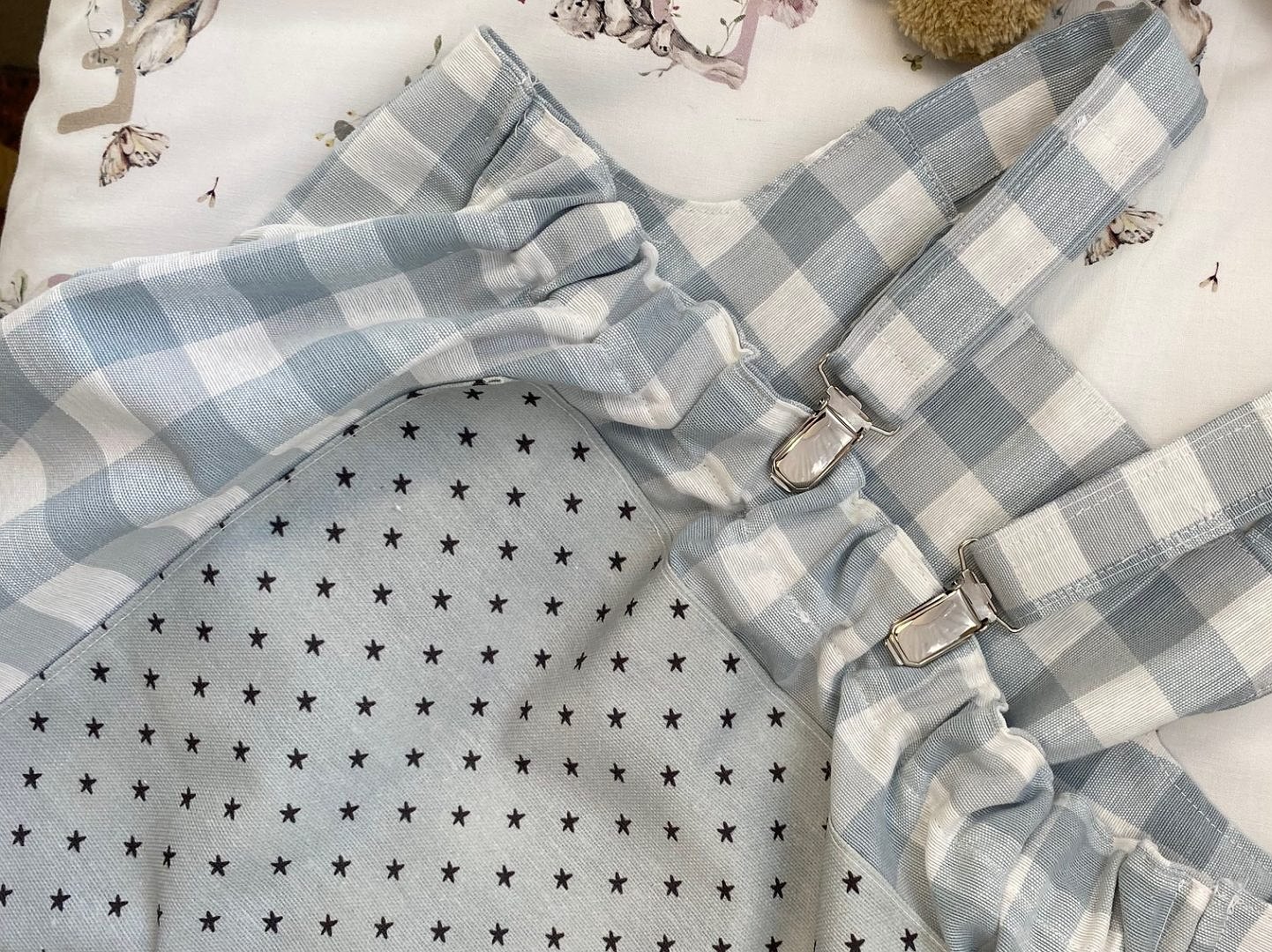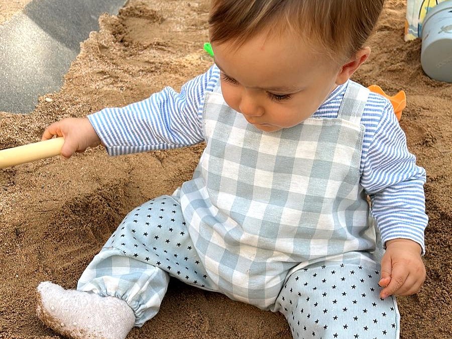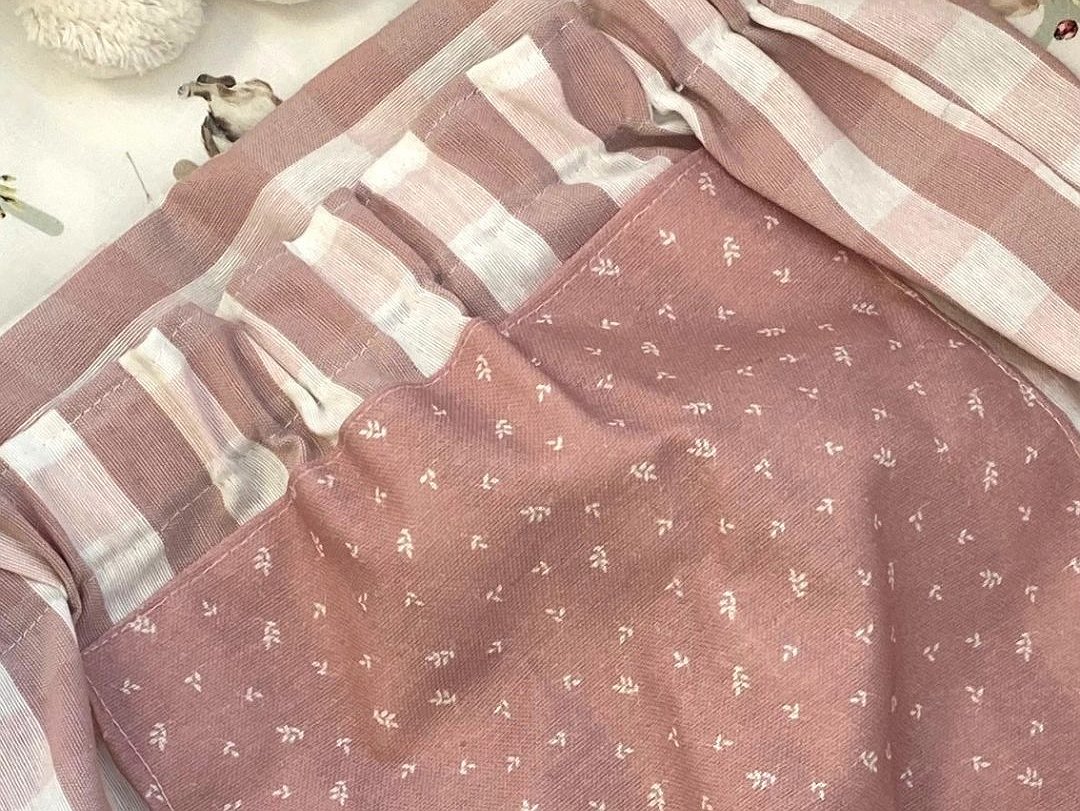 Lleva gomas en el bajo para que le quede bien ajustado y le entre menos arena cuando está jugando en el parque. También le hemos puesto tejido resinado para los puntos de mayor roce y así si está un poco húmedo proteja a tu bebé. Tienes dos combinaciones ideales! y así no estropeas su ropita. Las dos en vichy una en verde laurel y la otra en rosa nude, elije la que más te guste y si quieres bordarlos puedes comprar el bordado pinchando aqui Bordados para articulos que ya has comprado en Cotó Blanc.