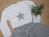 Pijama niño con camiseta invierno de algodón 100%. El conjunto esta compuesto por un pantalón largo y camiseta de manga larga diseñado con los tejidos que más te gusten. Las tallas suelen ajustarse bien correspondiendo con la edad, de todas maneras, si tienes dudas puedes ponerte en contacto con nosotros.