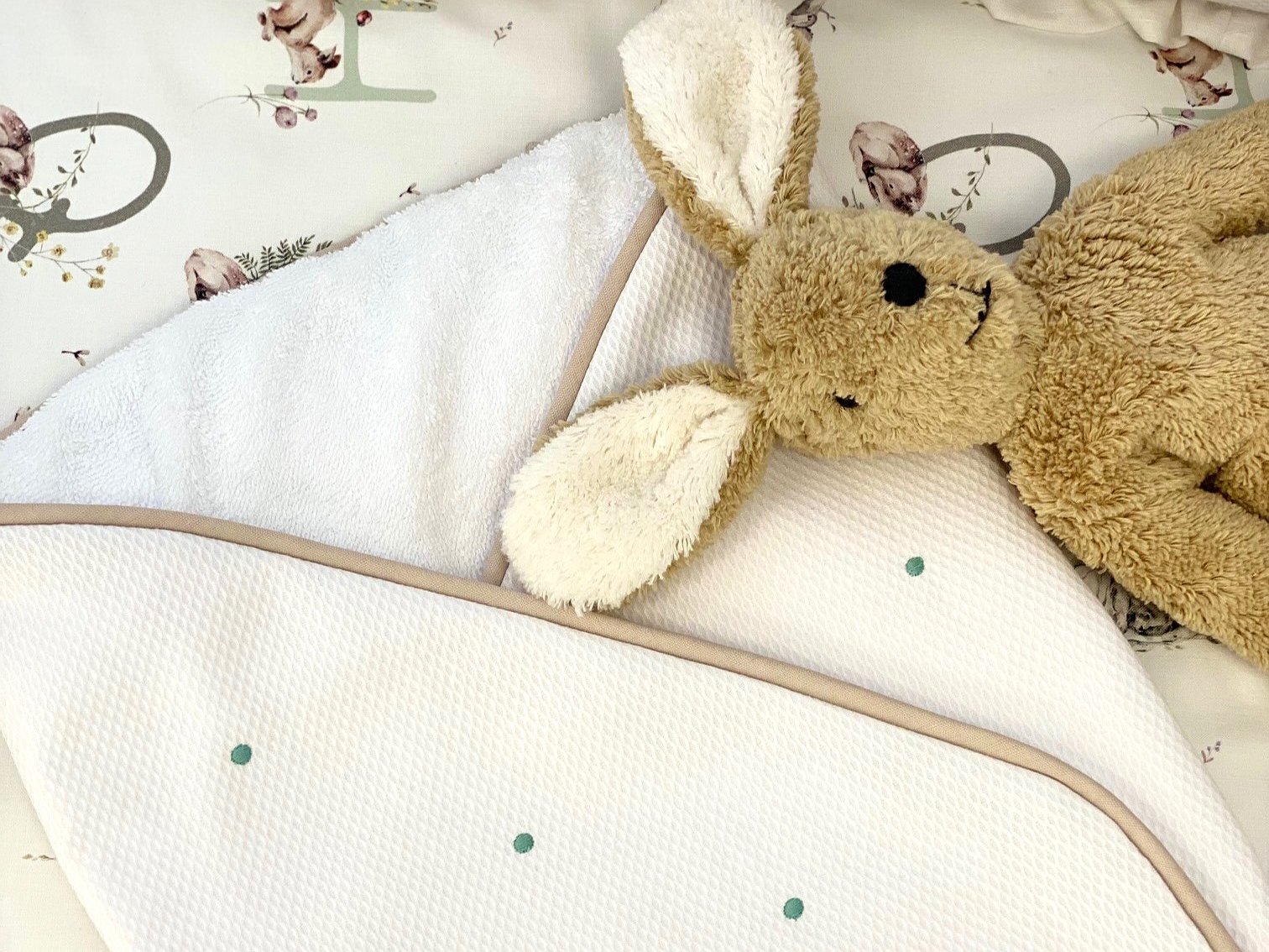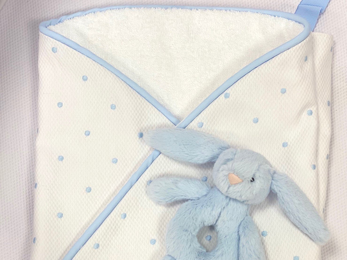 Arrullo piqué bodoque con cordoncillo, ideal para la clínica y para usarlo posteriormente para tapar al bebé y mantener así su calor corporal.