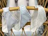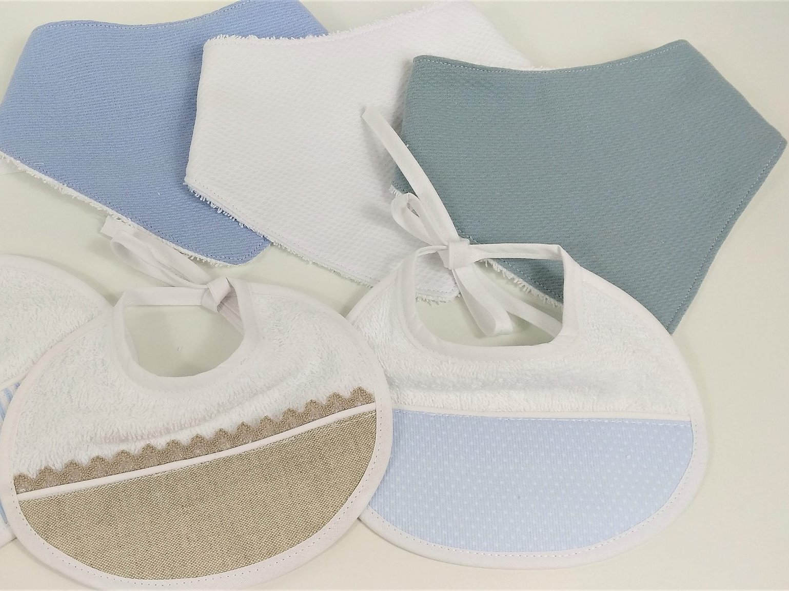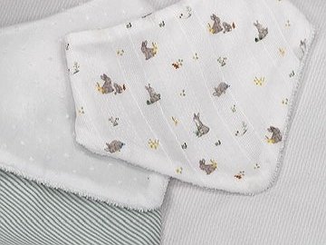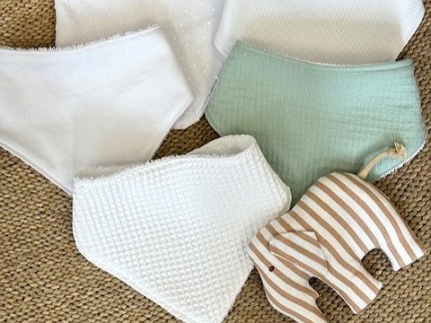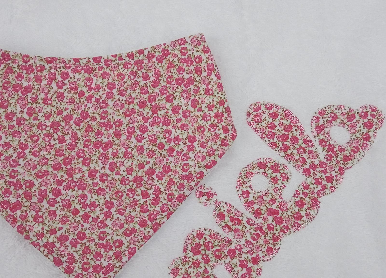 Babero bandana bebé está confeccionado, por una cara con rizo blanco 100% algodón, y por la otra con una tela estampada suave.