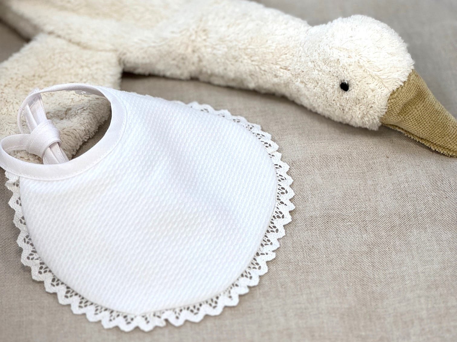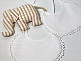 Babero para bautizo de puntilla en piqué de nido blanco y en la parte trasera de rizo blanco 100% algodón combinado con puntilla en el color que más te guste