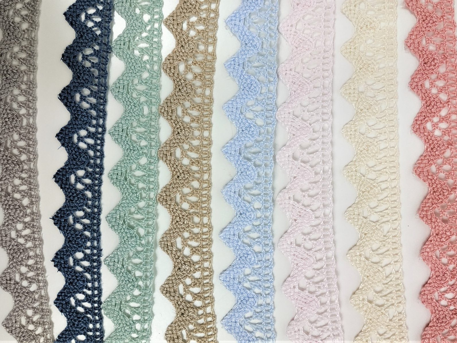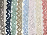 Tienes dos tipos una en bordado suizo pequeña y las otras de bolillo en diferentes colores.
