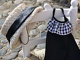 Se ata al cuello pero si se quiere, podemos dar unas puntadas para que quede cruzado en la espalda.