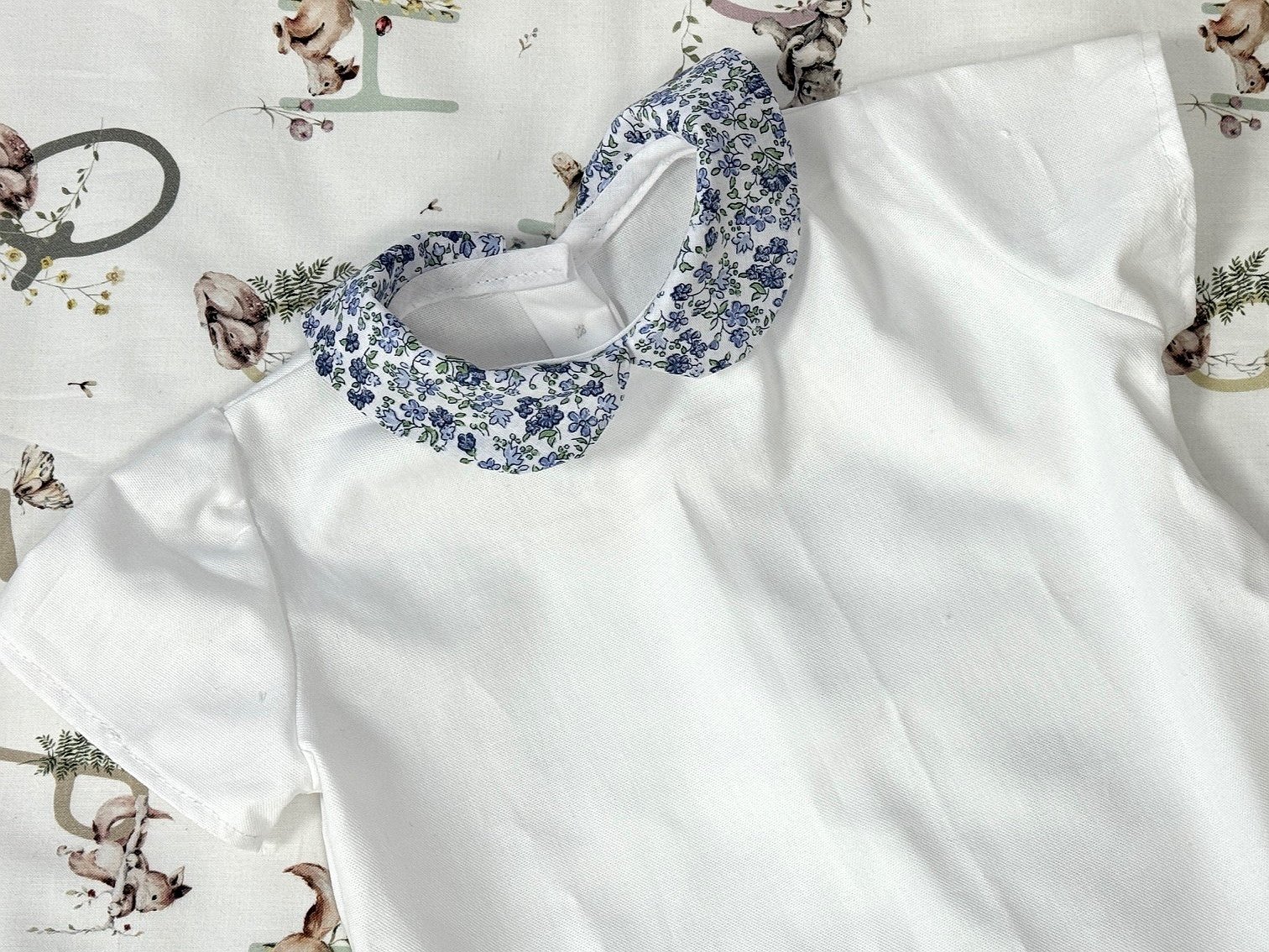 Camisita cuello bebé modelo María de color blanco y cuello redondo. Sin duda alguna, un básico imprescindible para los recién nacidos que podrás combinar y usar en múltiples ocasiones.