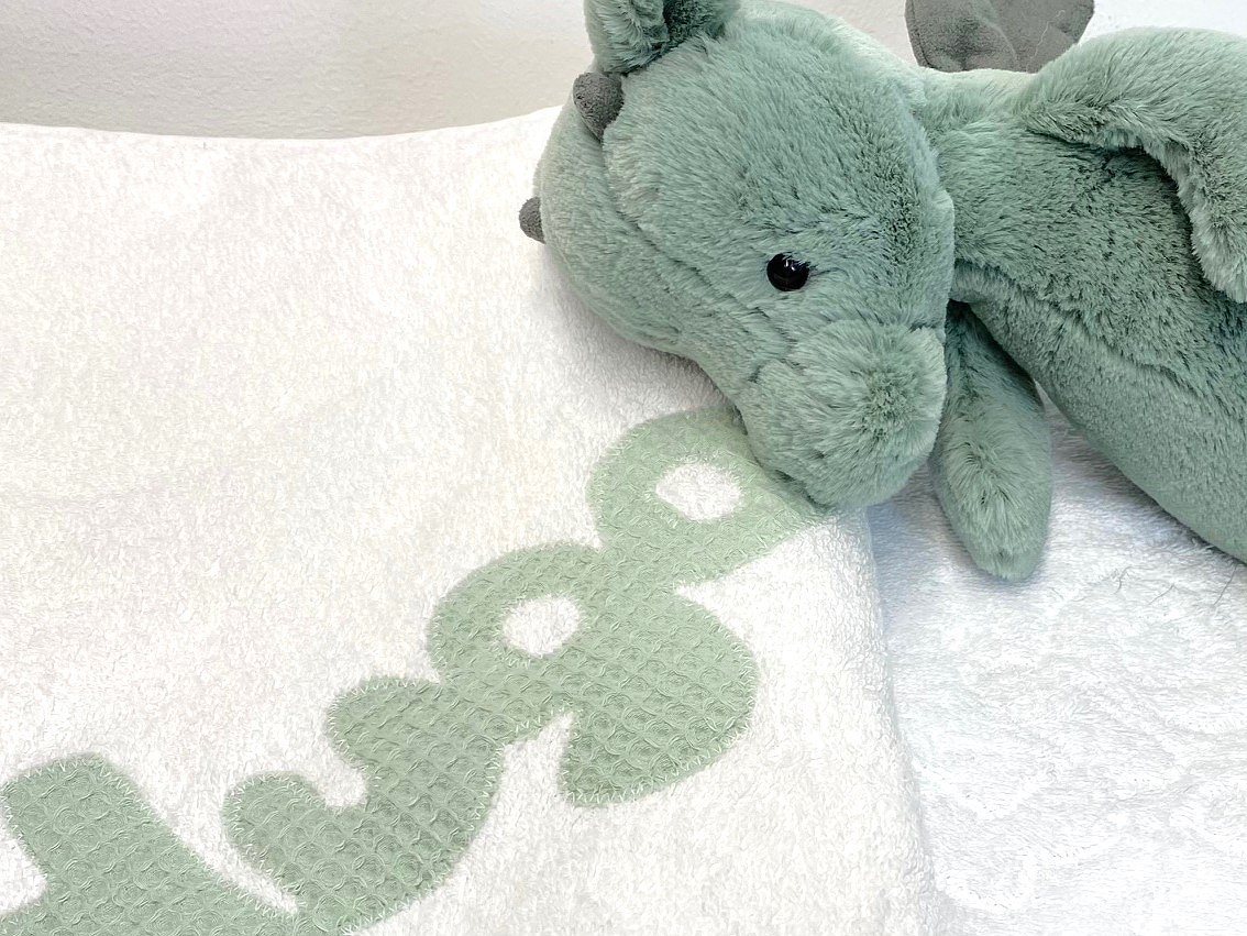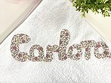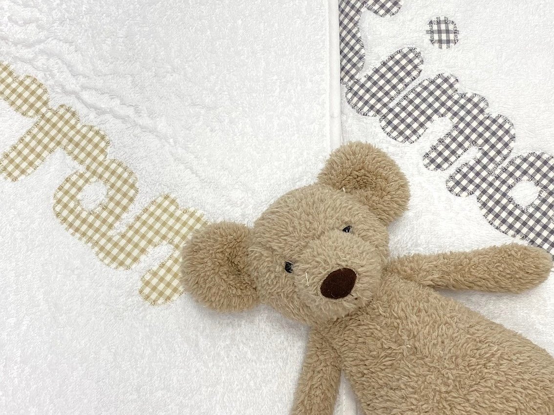 Capa de baño con nombre personalizada a tu gusto.
