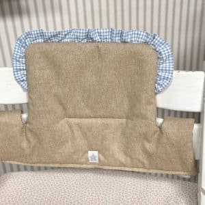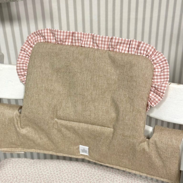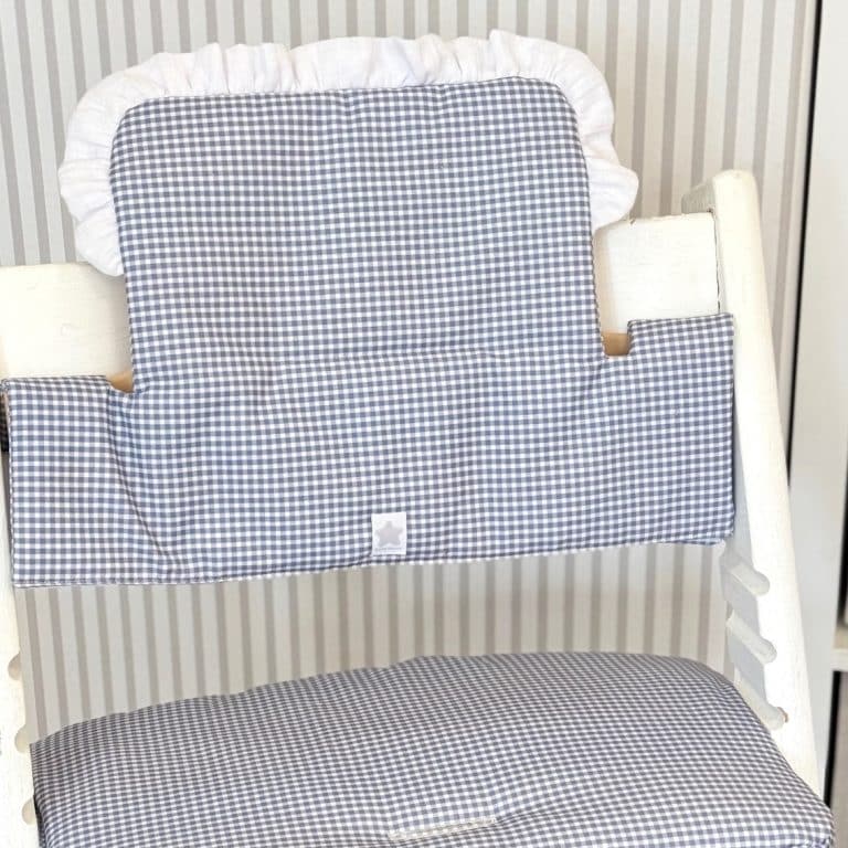 Cojín Trona Stokke Tripp Trapp resinado con volante personalizado con las telas que más te gusten. Se compone de las dos piezas, asiento y respaldo.