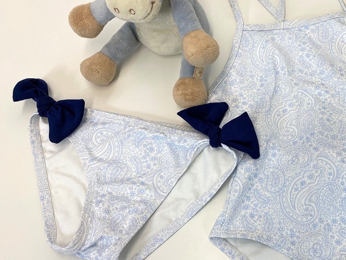 \nSi quieres puedes combinar para sus hermanas con Bañador de niña cashmir azul con lazo