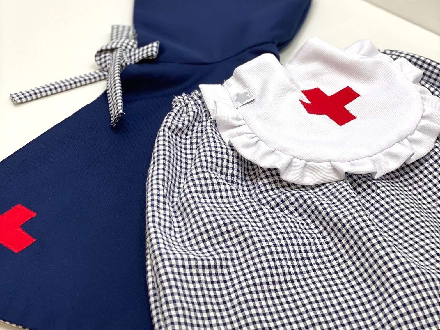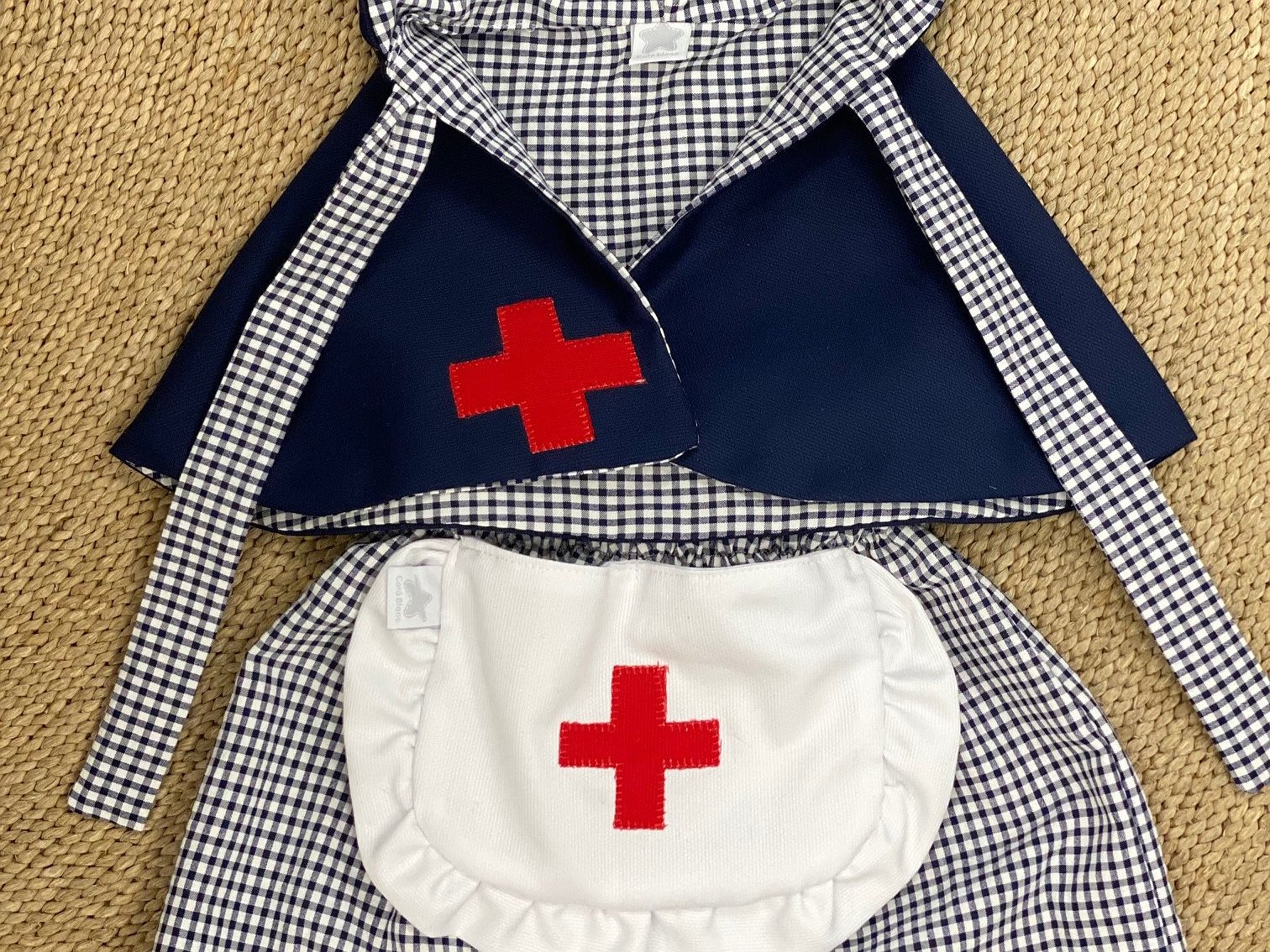 Disfraz enfermera para niñas . Compuesto por la falda con delantal unido por dos costuras para que no se caiga y se más cómodo para la niña.